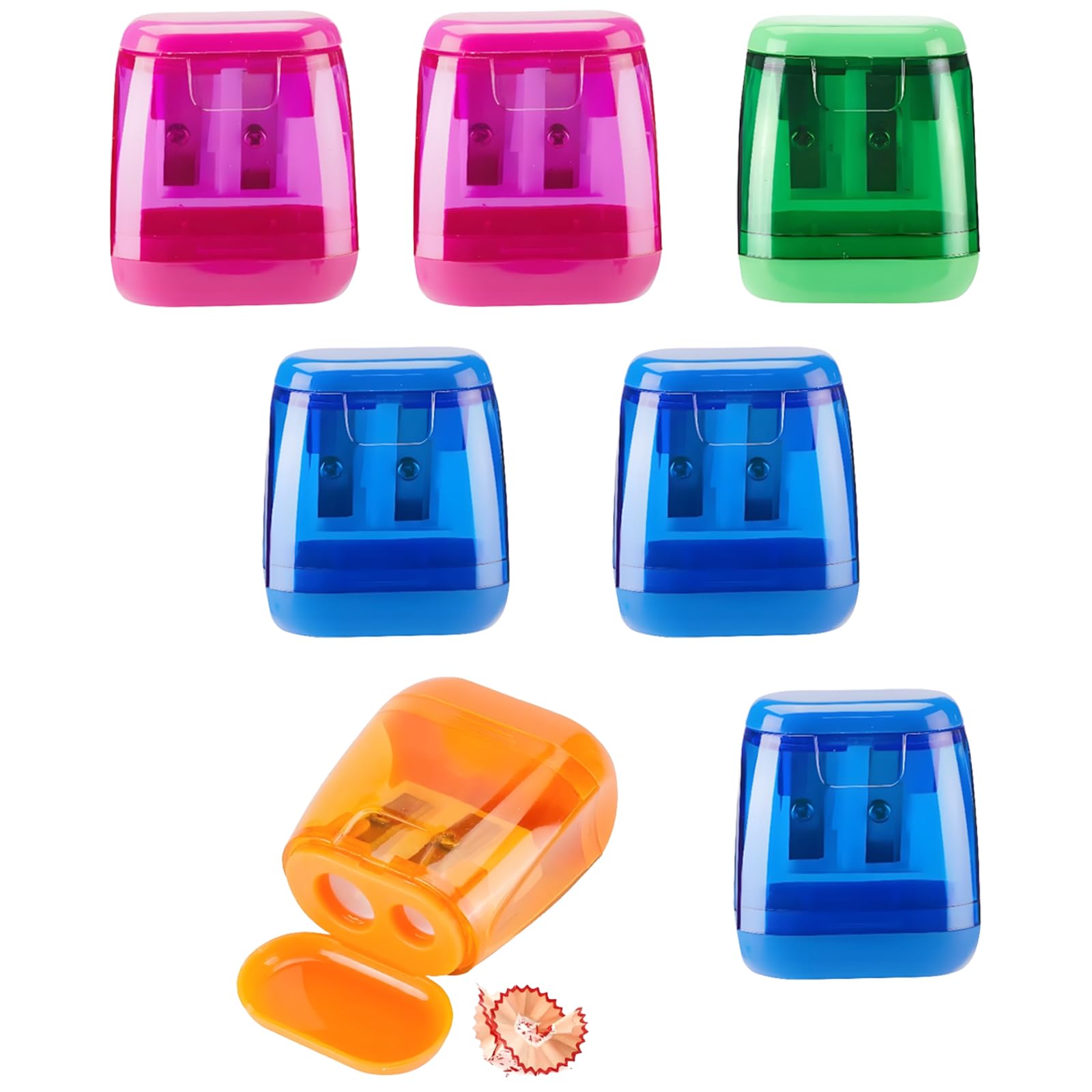 Paquete de 7 sacapuntas manuales, de doble agujero, fácil de limpiar, diseño compacto, 4 opciones de color para lápices, crayones