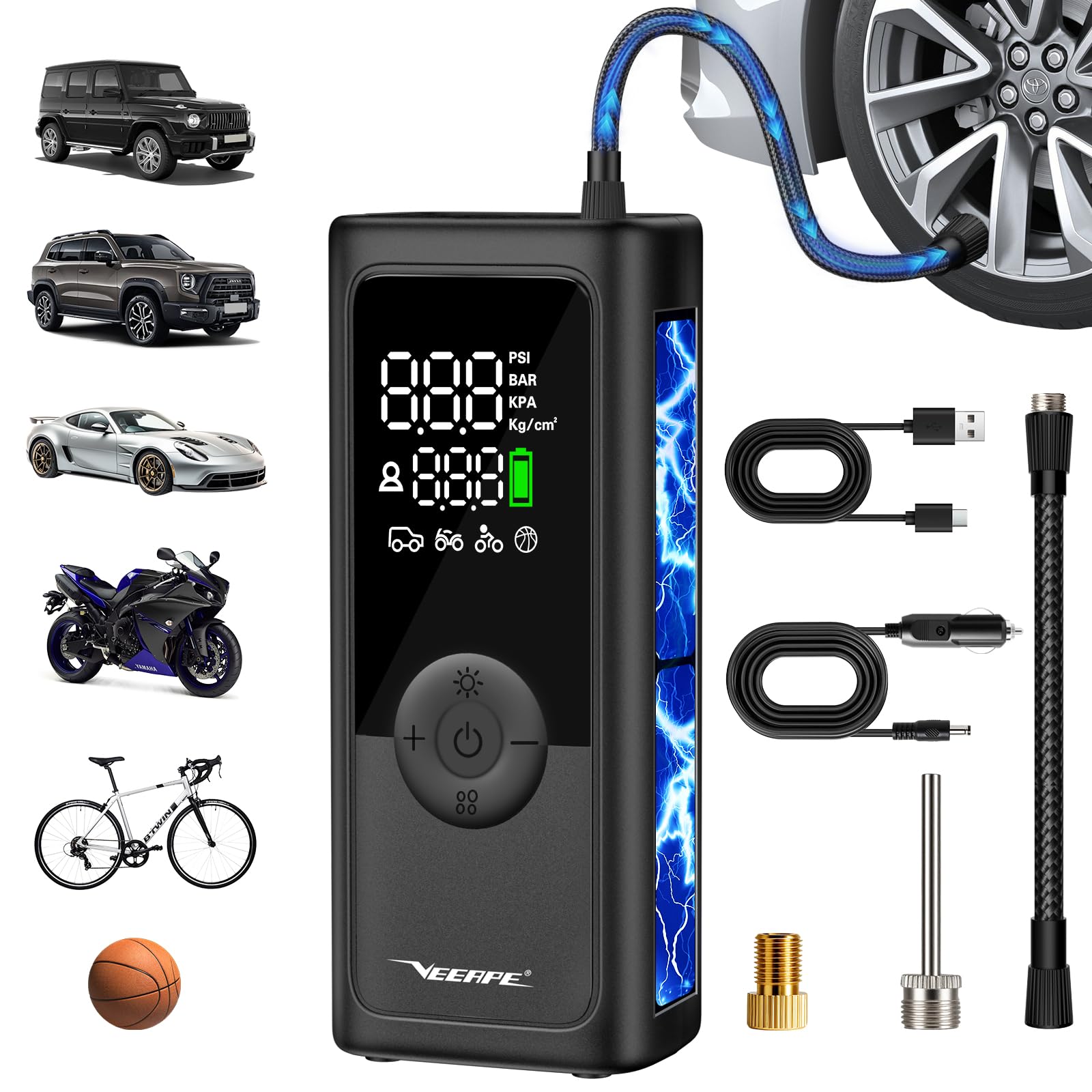 VEEAPE Inflador de neumáticos, compresor de aire portátil, 6 veces más rápido, bomba de aire inalámbrica para neumáticos de automó