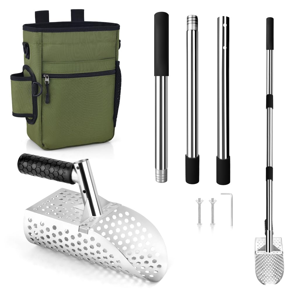 Cuchara de detector de metales y bolsa multifuncional para detectar metales, pala de arena de mango largo para detección de metale