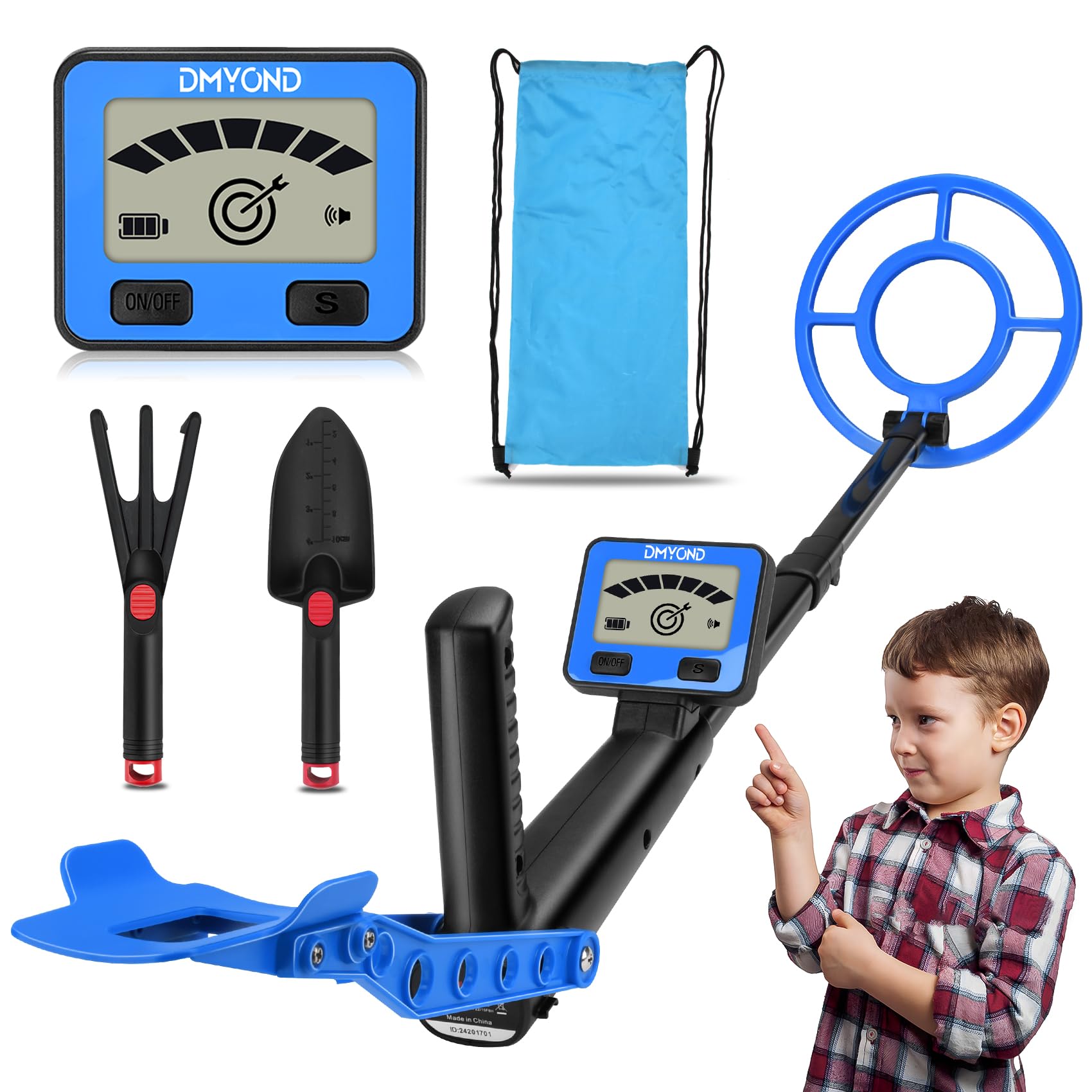 Detector de metales para niños, detector ajustable de 24-35 pulgadas con bobina de búsqueda de 7.4 pulgadas con pantalla LCD, azul