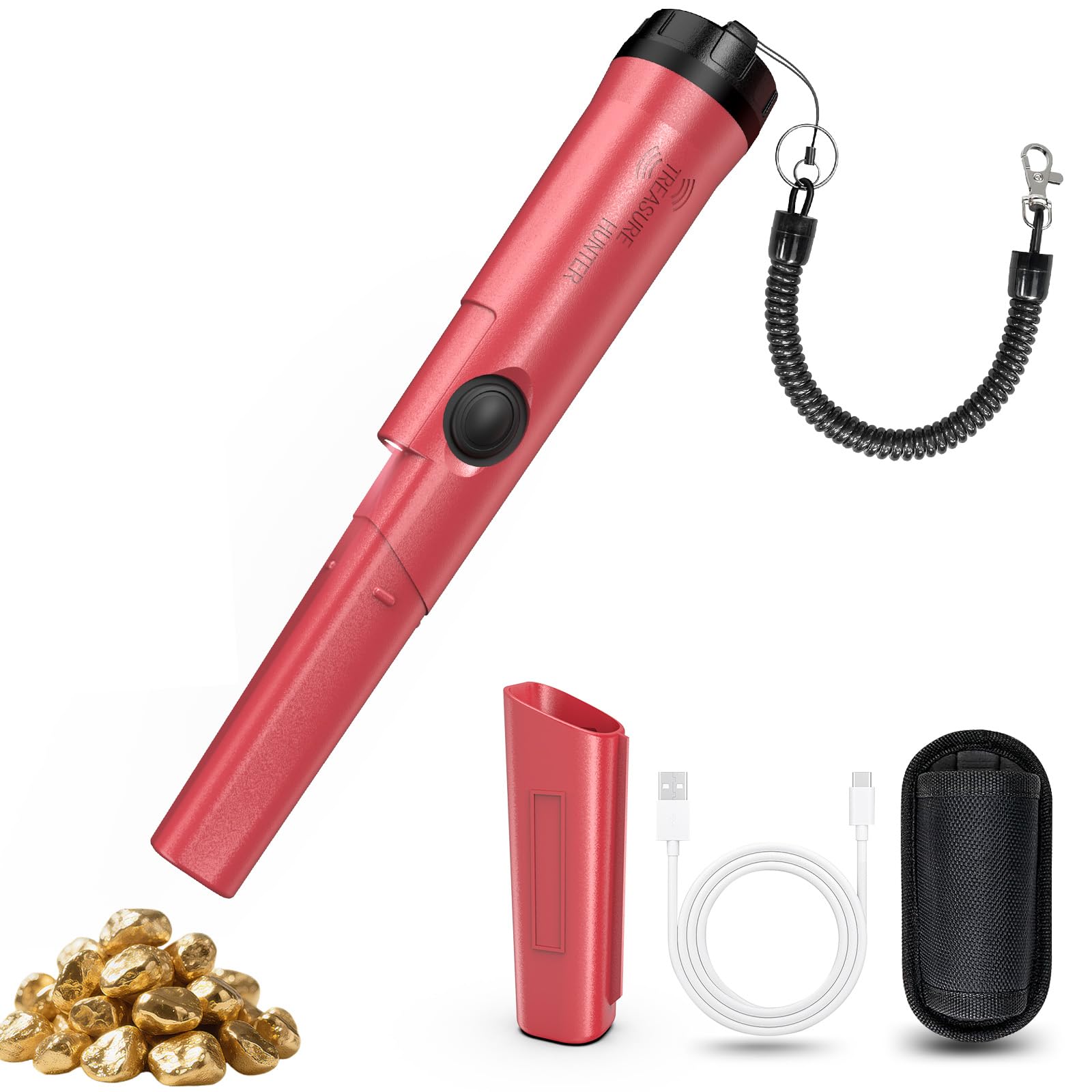 Pantalla LCD totalmente impermeable, detector de metales Pinpointer – (tres modos) Sonda de búsqueda de tesoros de 360° con funda