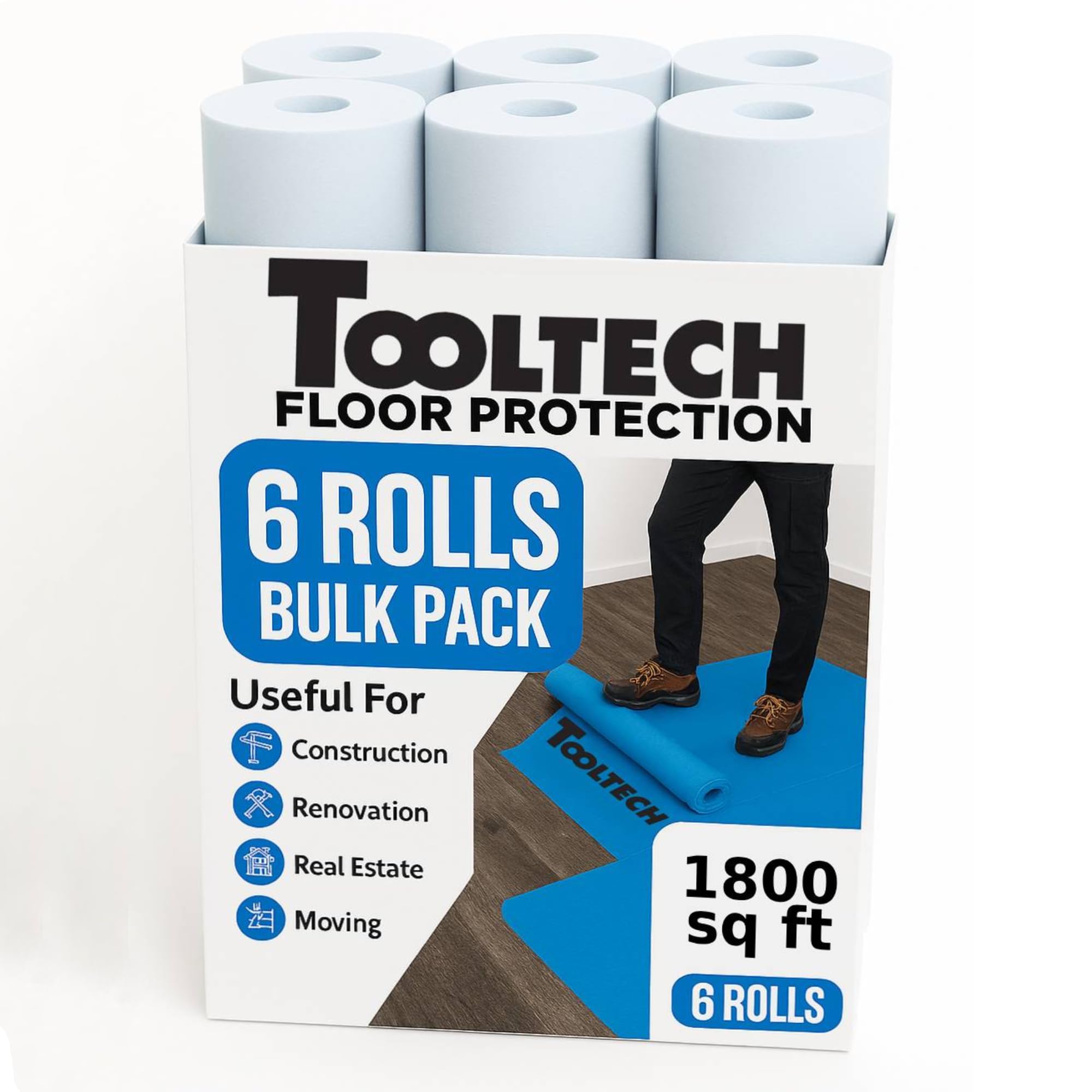 Paquete de 6 unidades – Protección temporal de suelo para renovación, pintura, construcción, 40 pulgadas x 90 pies, cubre 1800 pie
