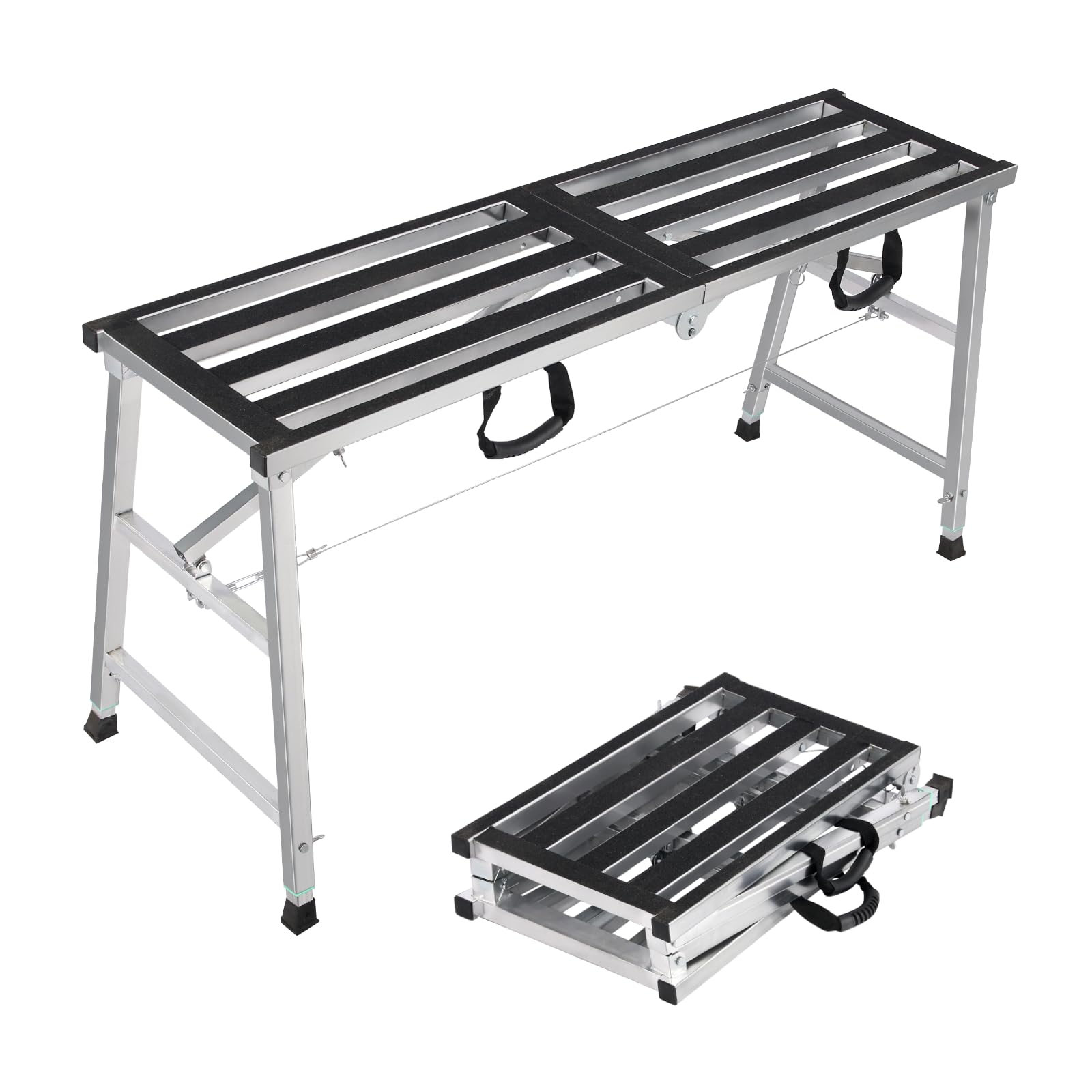 Plataforma plegable de andamio de 55 pulgadas de largo x 15 pulgadas de ancho, ajuste de altura de 27-43 pulgadas de alto, taburet