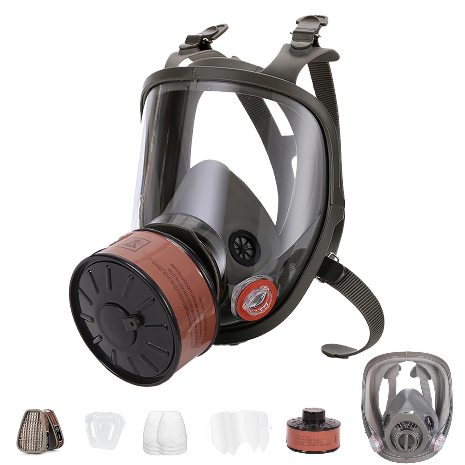 Máscara de gas reutilizable, máscara respiradora de cara completa con filtros de carbón activado de 6001 y 1.575 in, protector fac