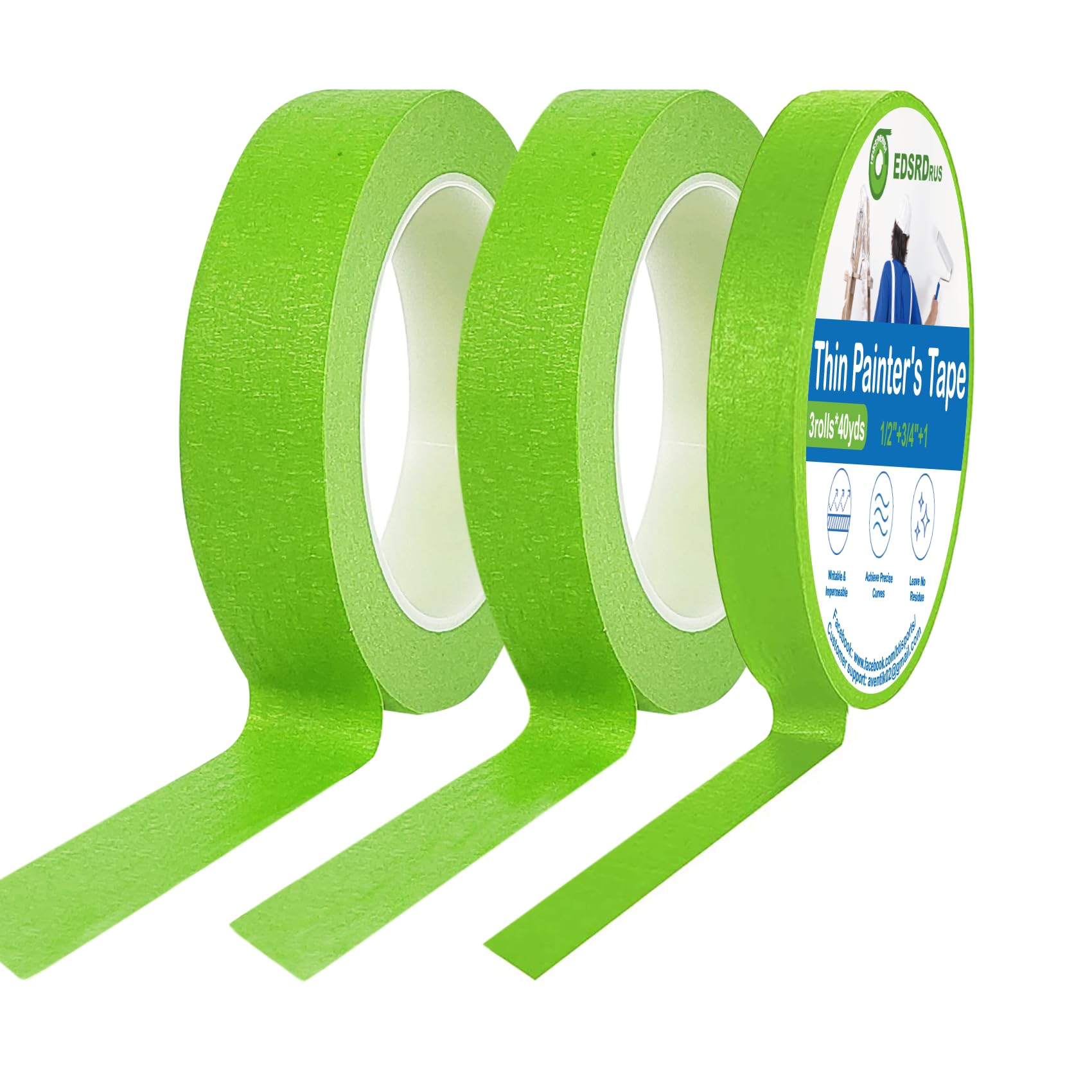 Cinta fina para pintores de 1/8, 1/4, 1/2,3/4,1 pulgadas de ancho de 40 yardas, cinta de pintura para bricolaje, manualidades y gr