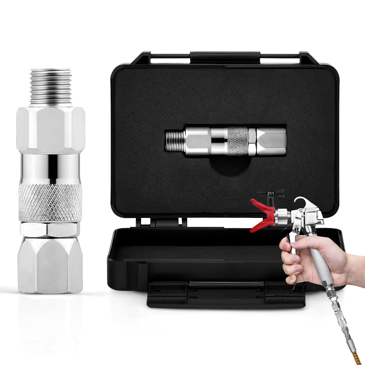 Junta pulverizadora de 1/4 de pulgada con rotación de 360° de acero inoxidable sin aire, manguera de pistola de pulverización de a