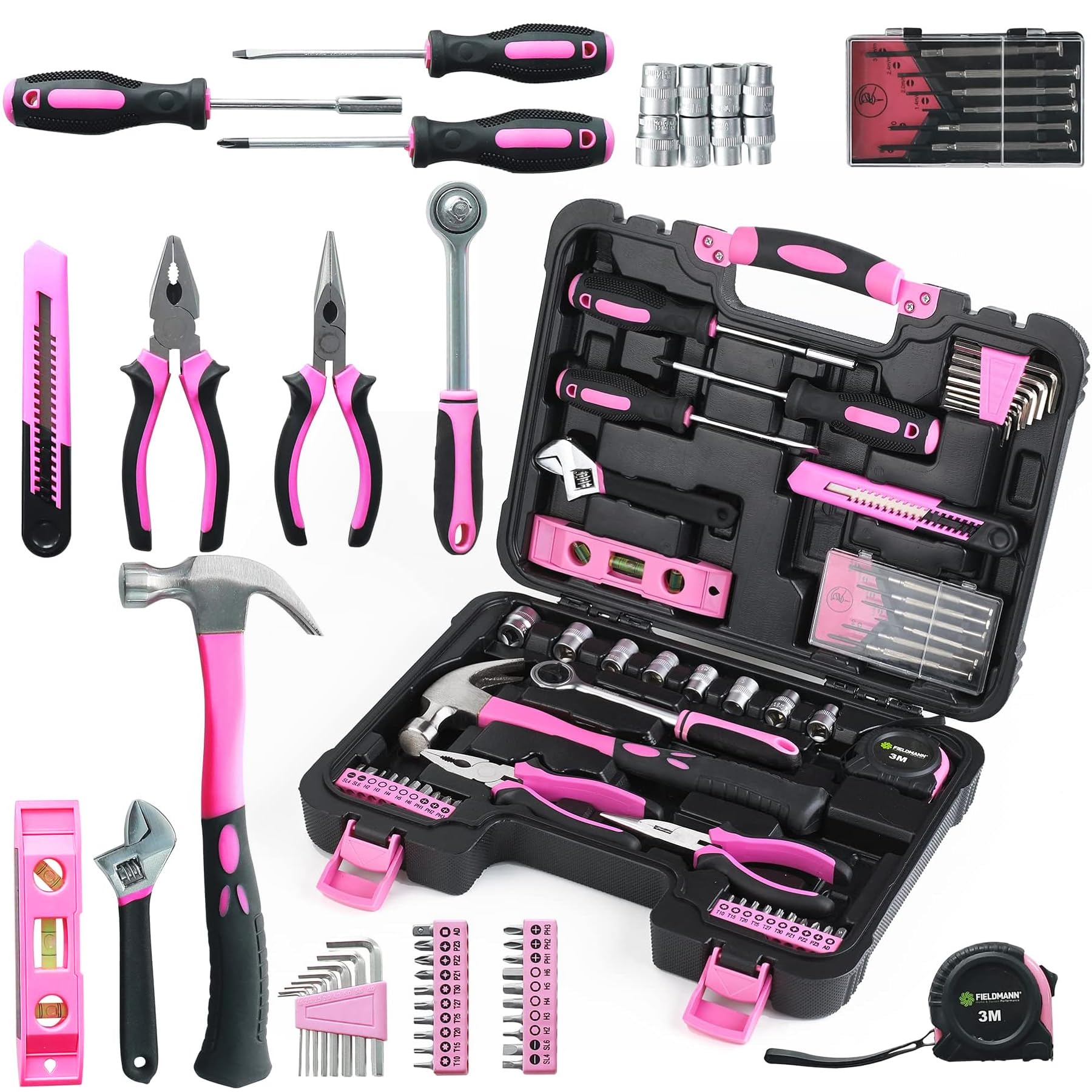 FASITE Juego de herramientas de 53 piezas color rosa para el hogar, juego de herramientas manuales de reparación de bricolaje gene