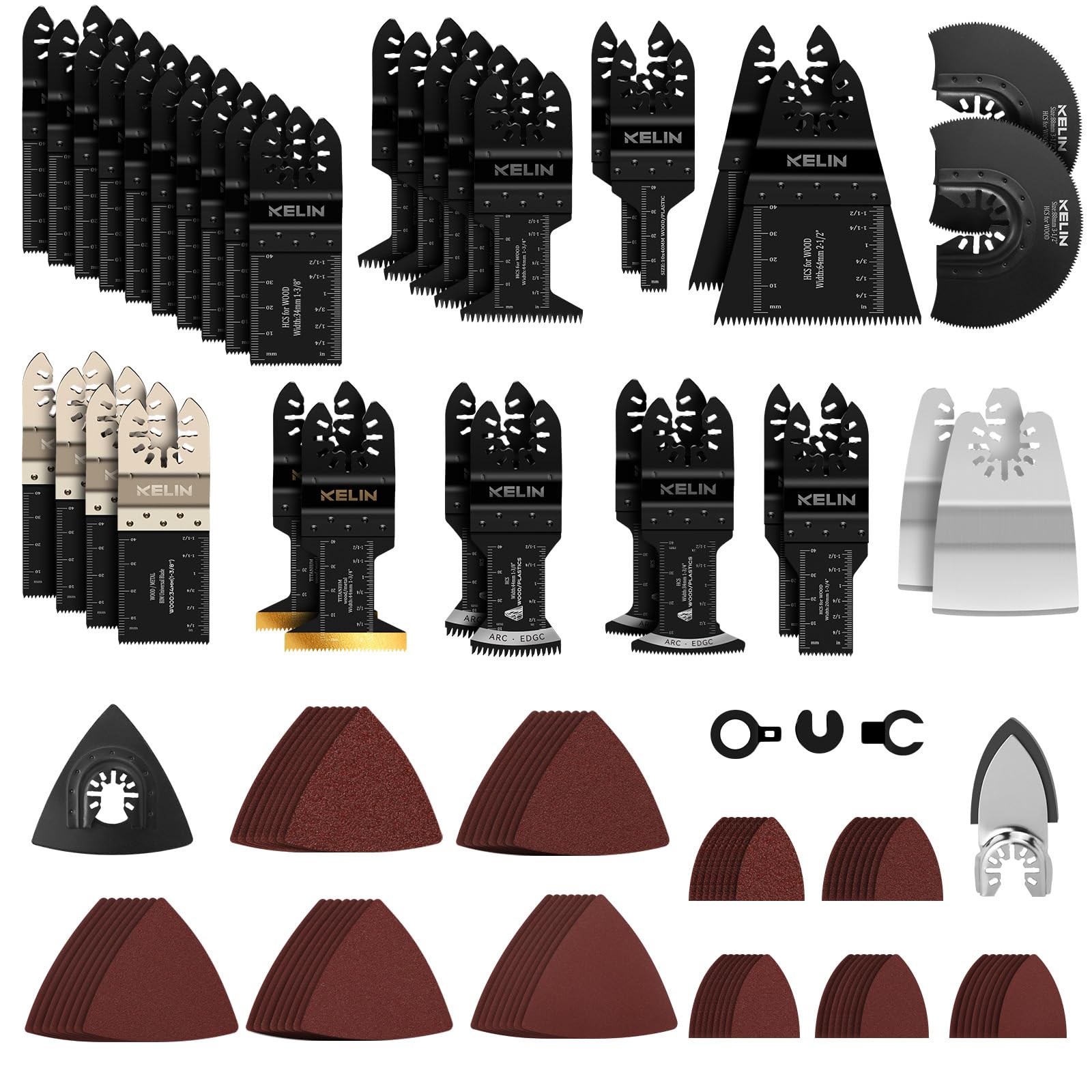 KELIN Juego de cuchillas multiherramienta de corte y papel de lija, accesorios de herramientas oscilantes universales, 11 tipos de
