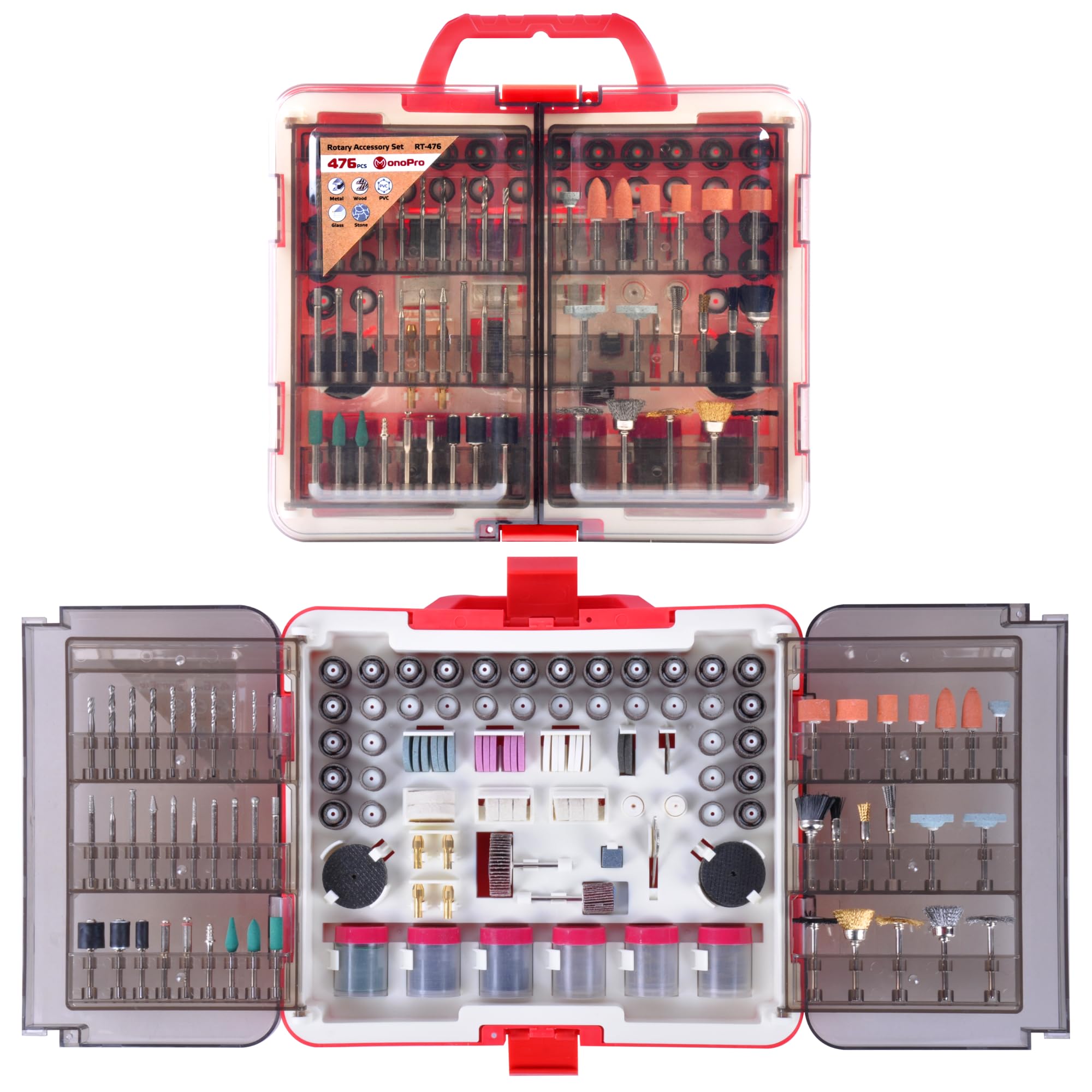 Kit de accesorios para herramientas rotativas de 476 piezas, kit de herramientas rotativas de vástago de 1/8 pulgadas, ajuste univ