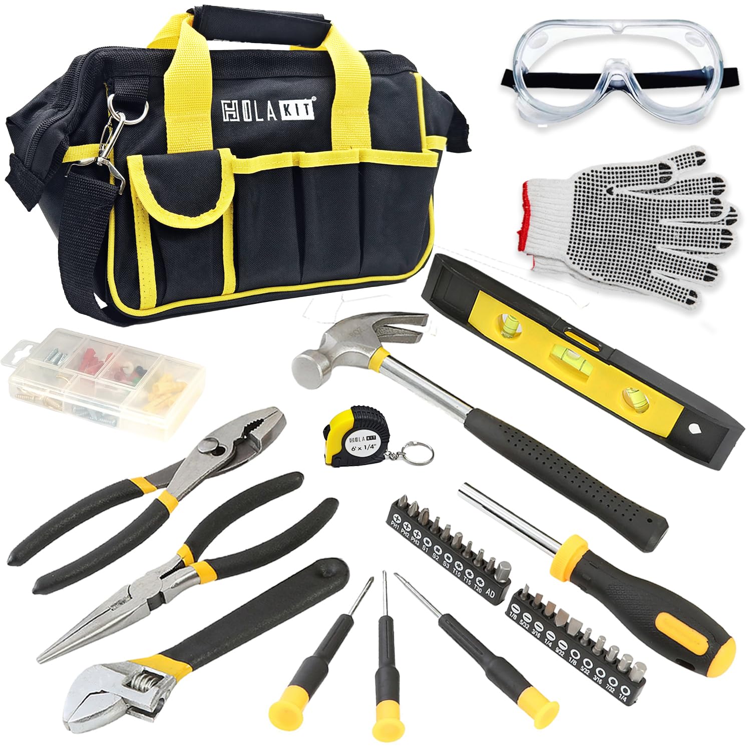 HolaKit Kit de herramientas para casa, juego de herramientas para el hogar de 64 piezas con bolsa de herramientas de 18 bolsillos