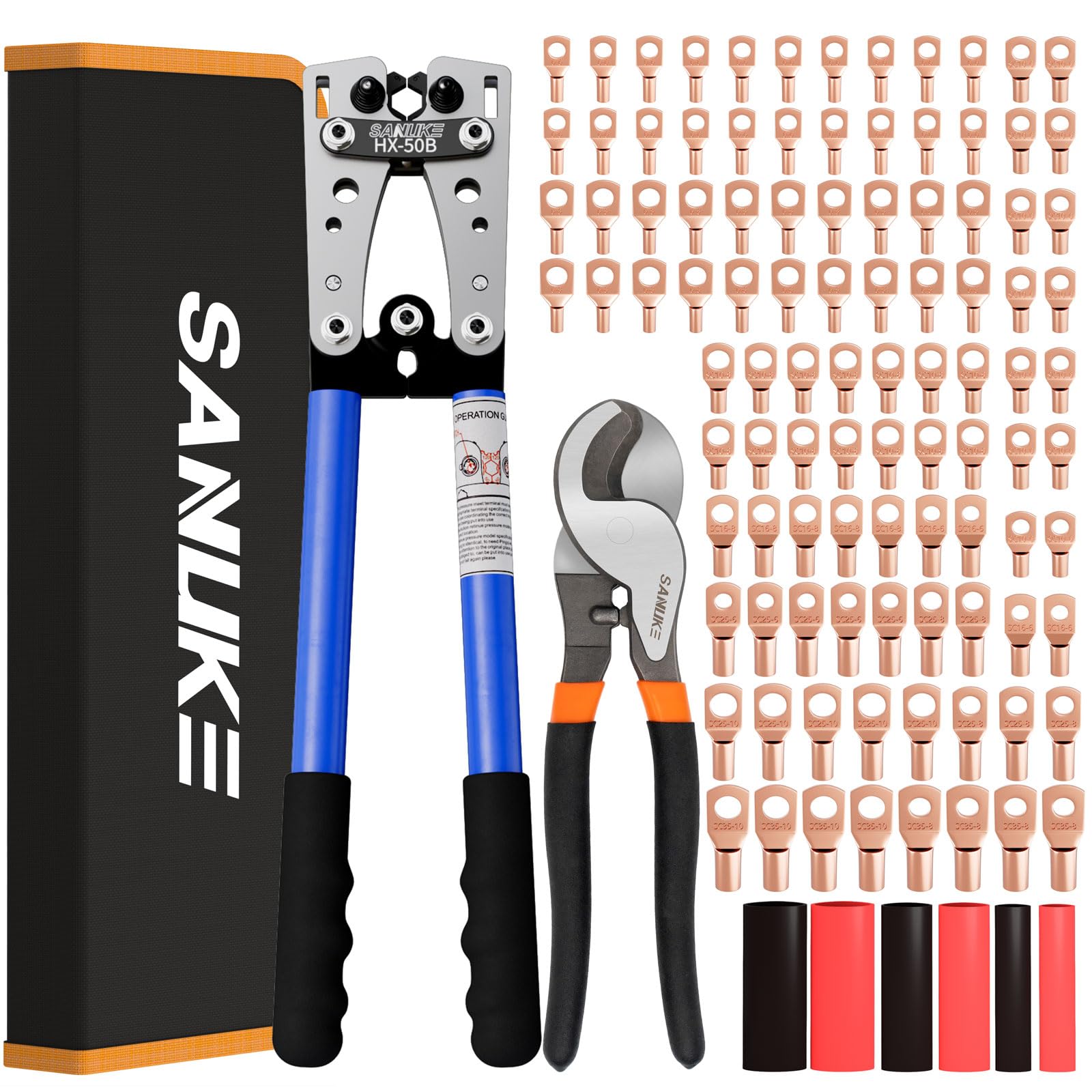 Sanuke Kit de herramientas de engaste de cable de batería para terminales de cable eléctrico AWG 8-1/0, crimpadora de cables con 1