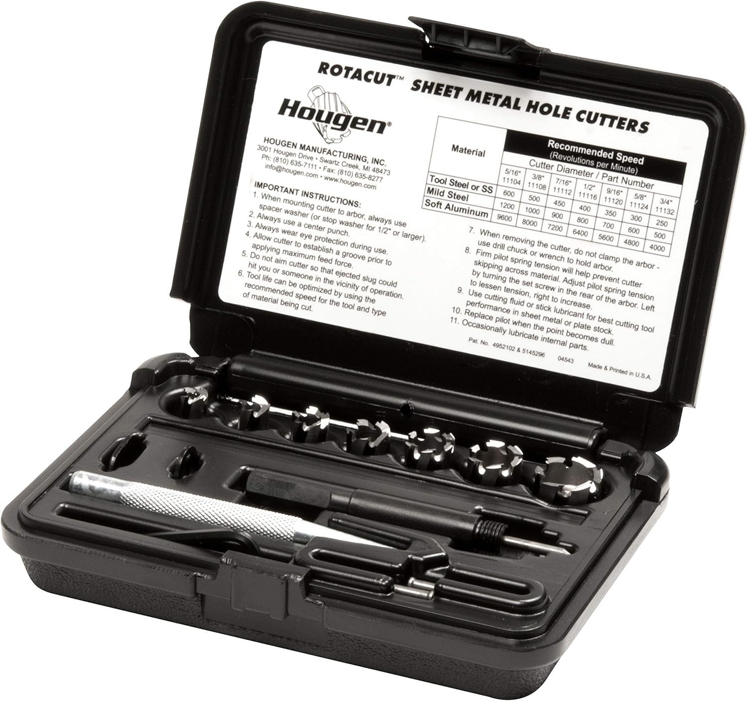 Hougen 11075 RotaCut Kit de corte de acero de alta velocidad 5/16″, 3/8″, 7/16″, 1/2″, 9/16″, 5/8, 3/4″, 1/4″ profundidad de corte