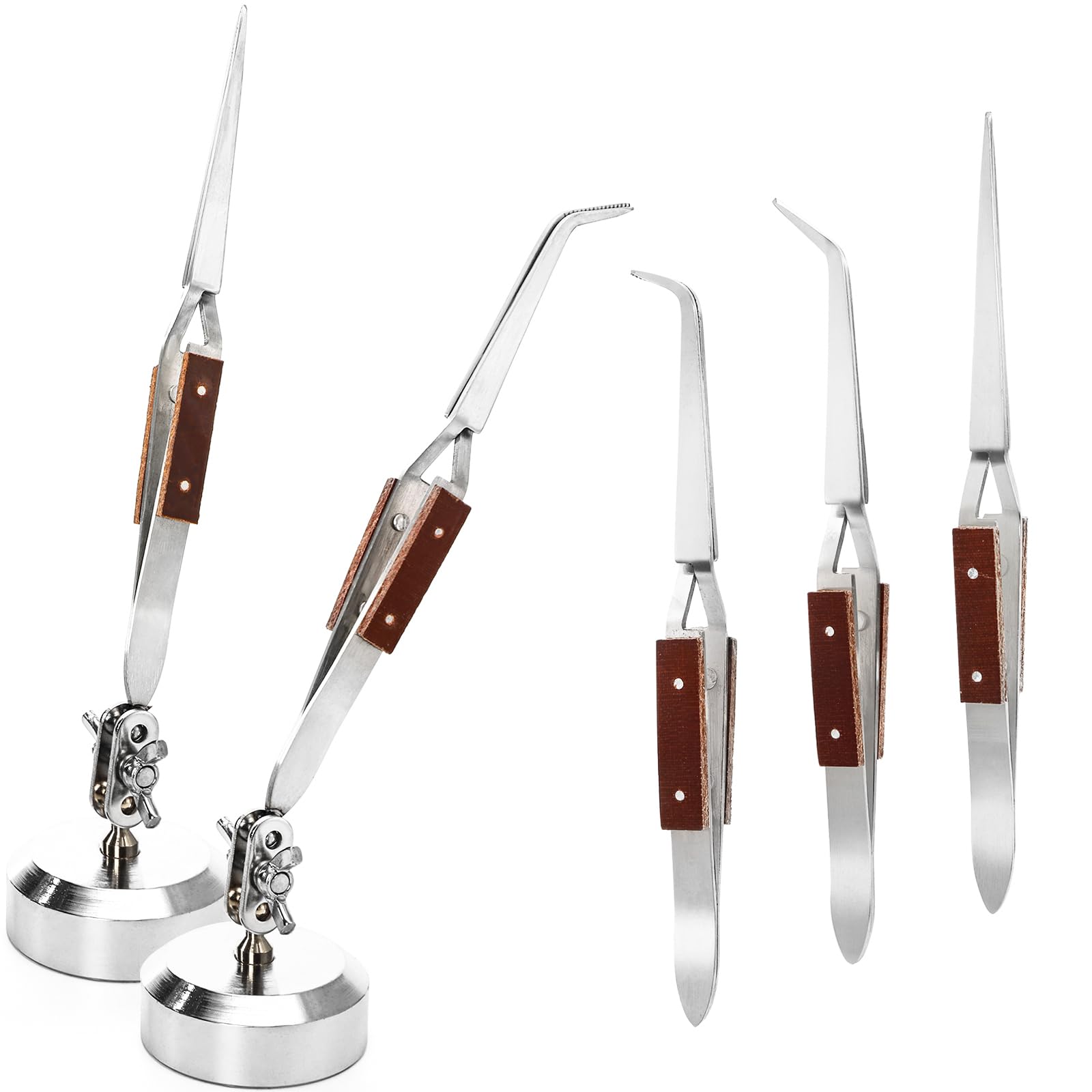 WUWEOT Juego de 5 pinzas de soldadura, alicates de soldadura curvados rectos y pinzas de soldadura con agarre de fibra de bloqueo