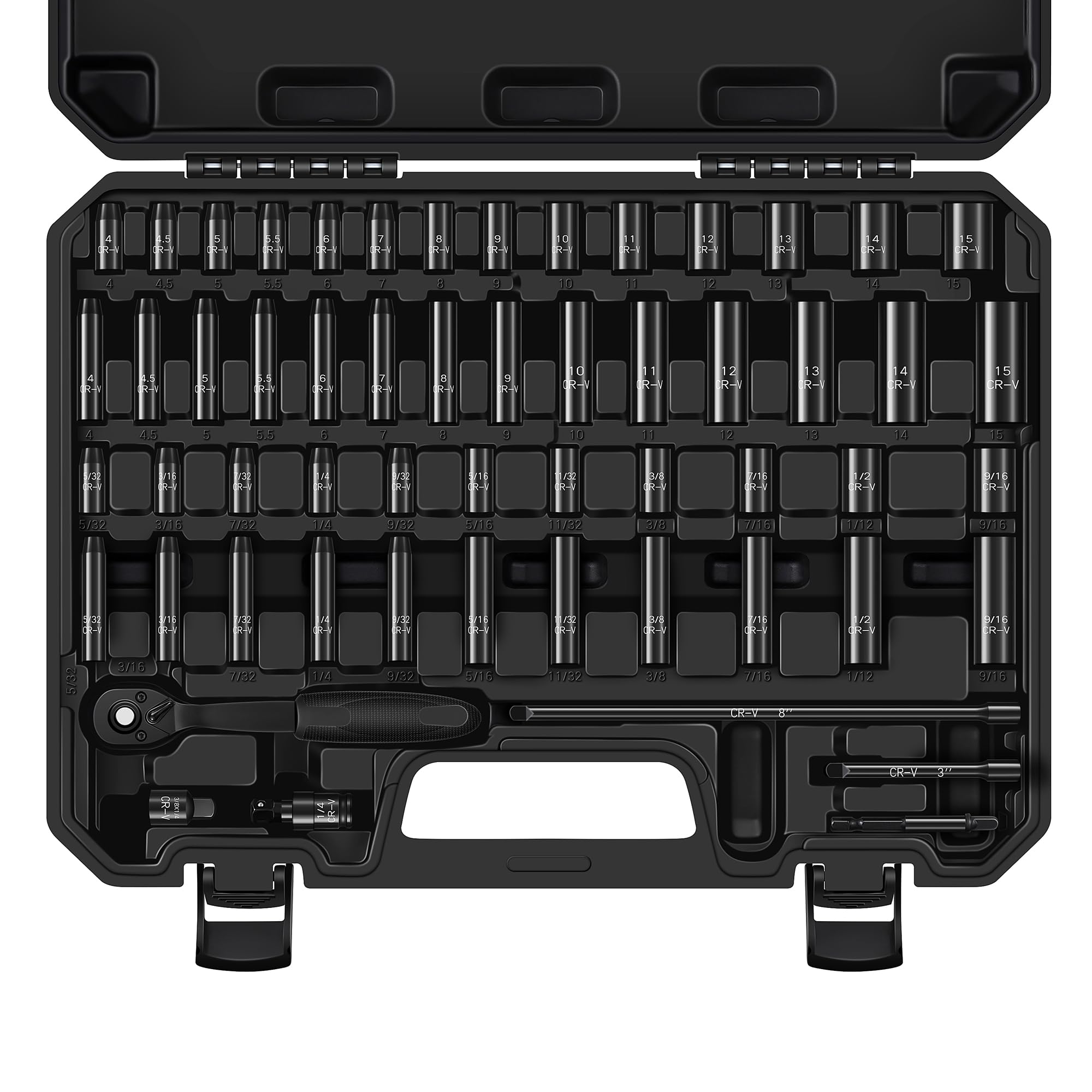 ALOANES Juego de 56 llaves de vaso de 1/4 de pulgada, SAE (5/32″-9/16″) y métricas (0.157 in-0.591 in), profunda y superficial, ll