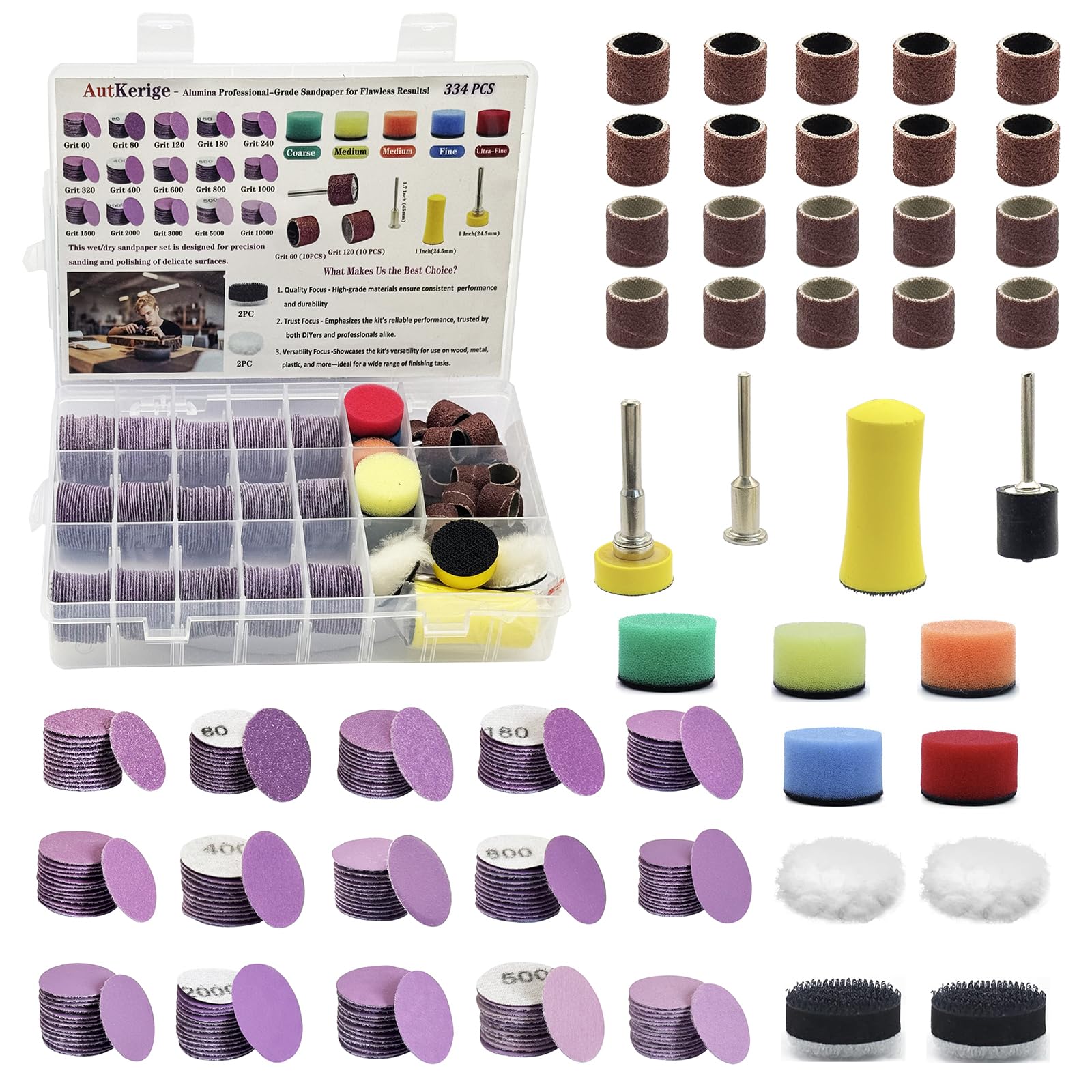 Discos de lijado de 1 pulgada 334 piezas para Dremel – Gancho y bucle de alúmina Papel de lija húmedo/seco grano 60-10000, kit de