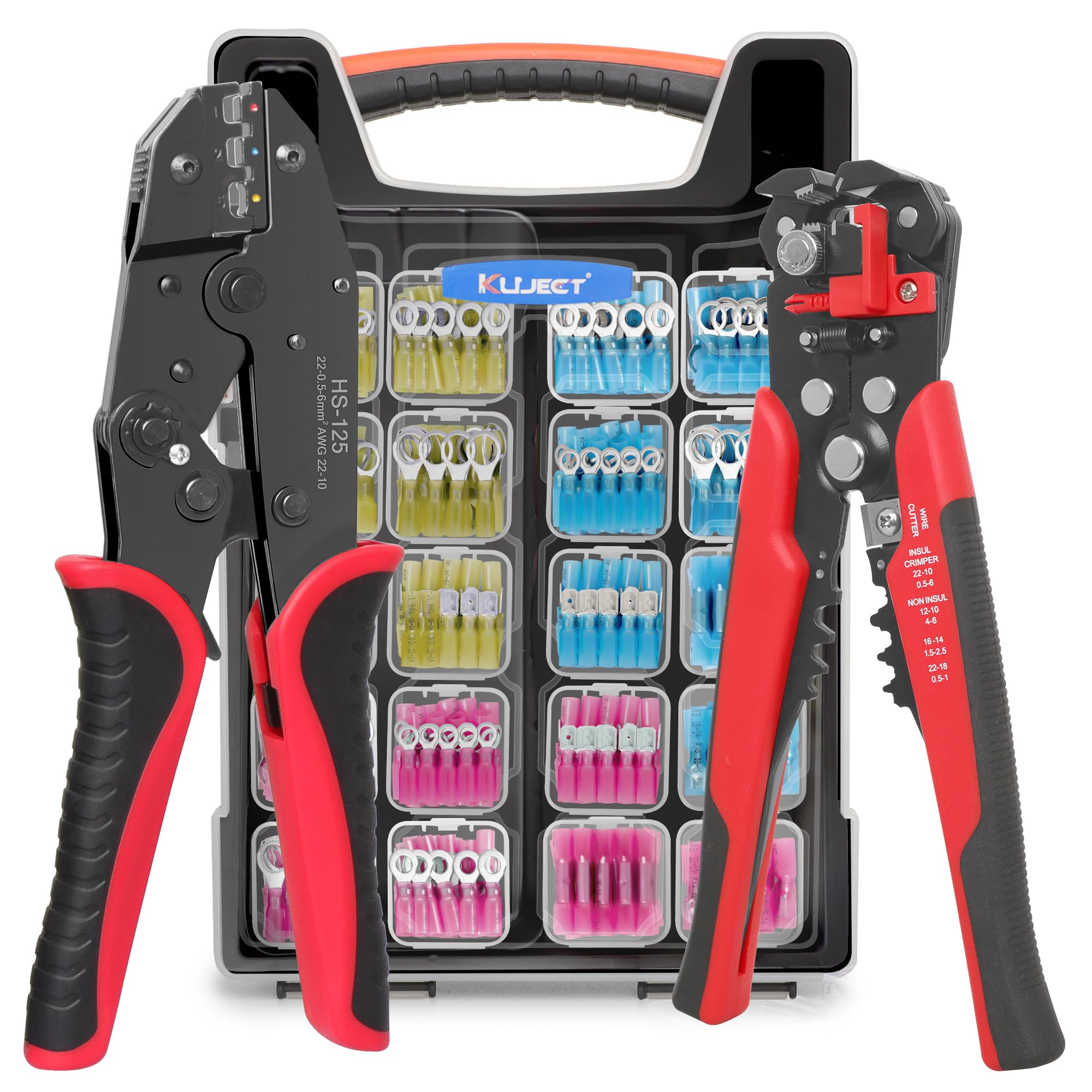 Kuject Kit de herramientas de crimpado con 340 conectores de alambre termorretráctil de grado marino AWG 22-10 y pelacables ajusta