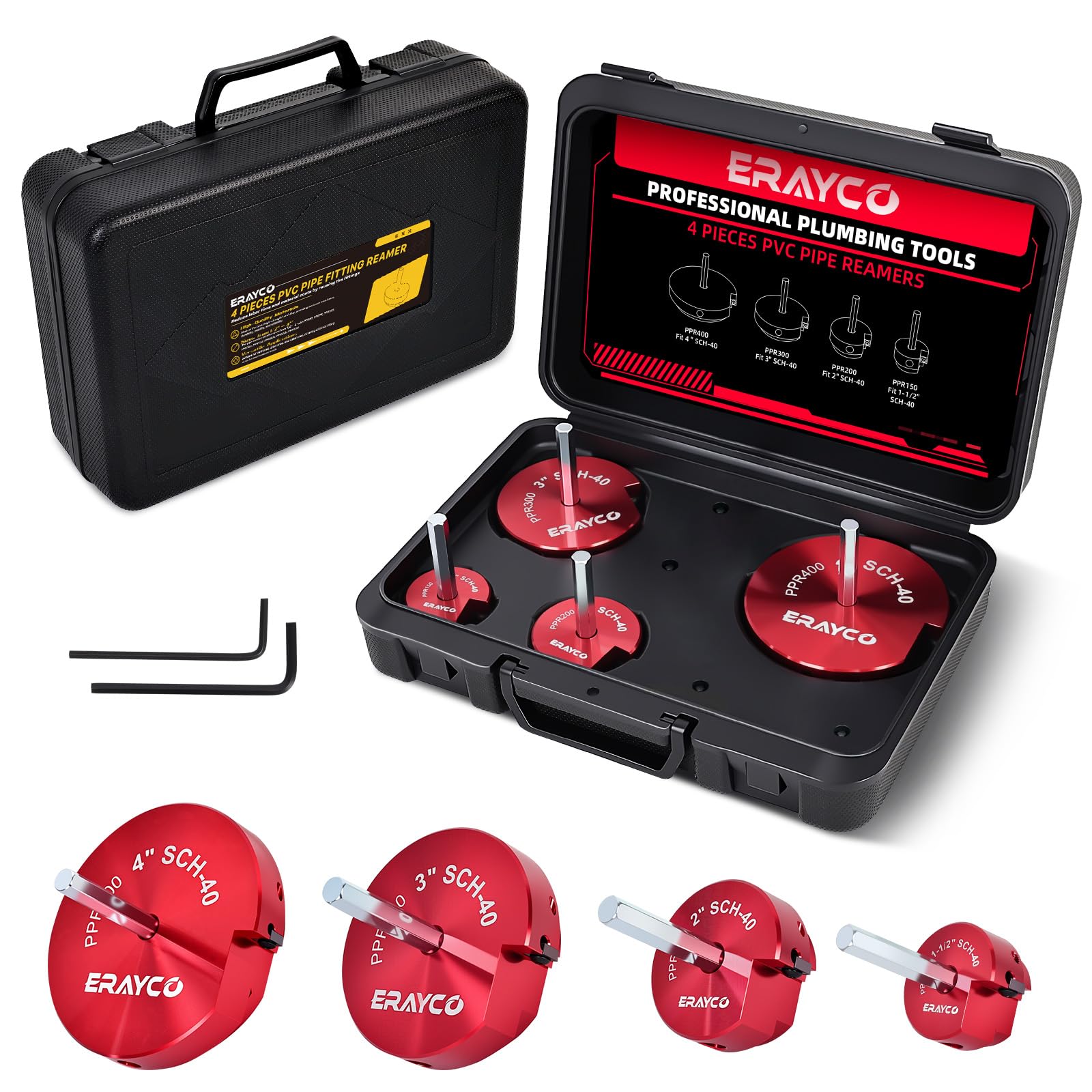 Juego de 4 escariadores de tubos de PVC, herramienta de escariador de montaje de tubería de plástico, encaja en taladros estándar