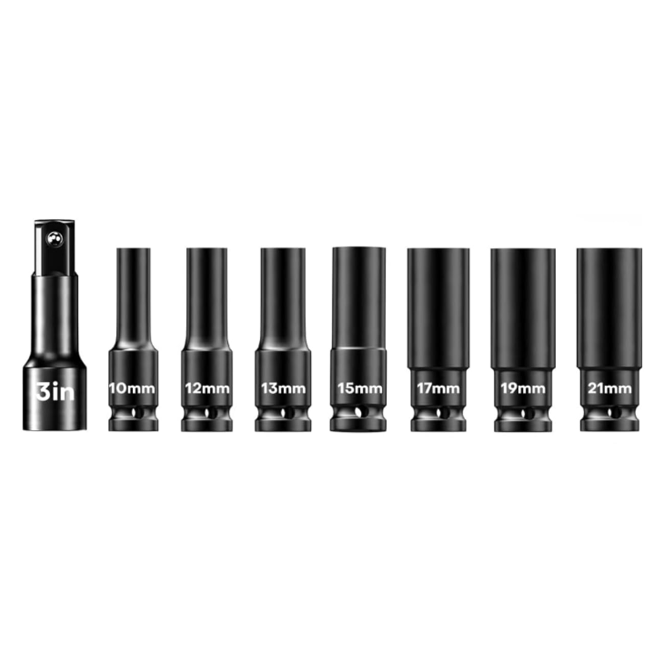 KIMO – Juego de 8 llaves de vaso de impacto de 1/2 pulgada, 10, 12, 13, 15, 17, 19, 0.827 in, juego de llaves de acero Cr-V