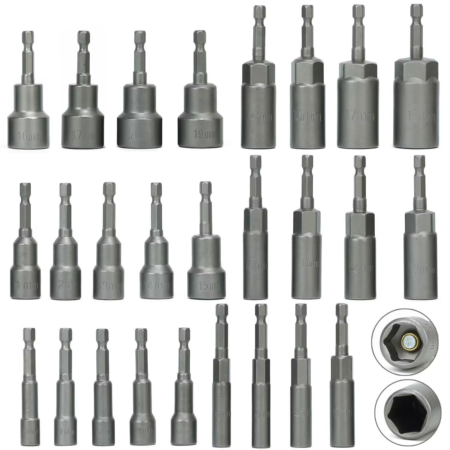Juego de 26 destornilladores de tuercas de impacto métricas profundas y magnéticas, juego de dados hexagonales de 0.315 pulgadas a