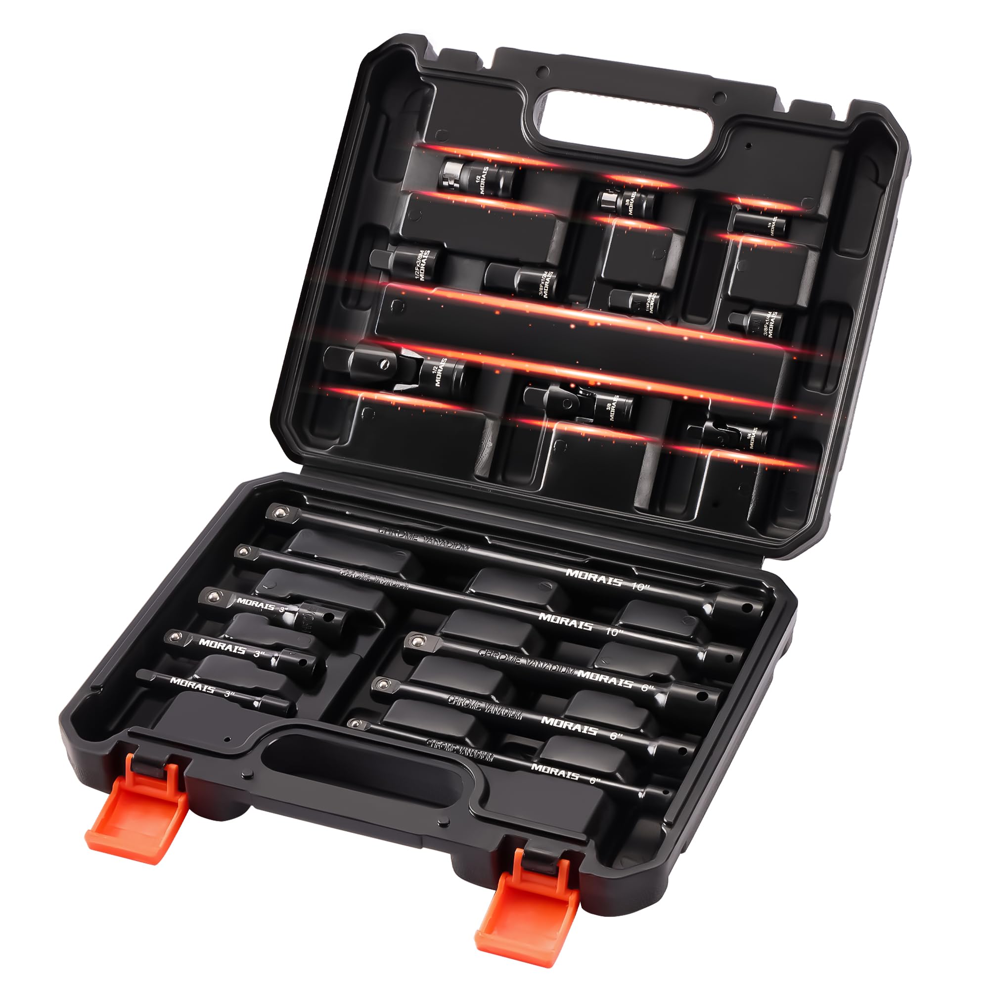 Morais Juego de 18 piezas de extensión de enchufe para herramientas de accionamiento, incluye adaptadores de enchufe, extensiones,