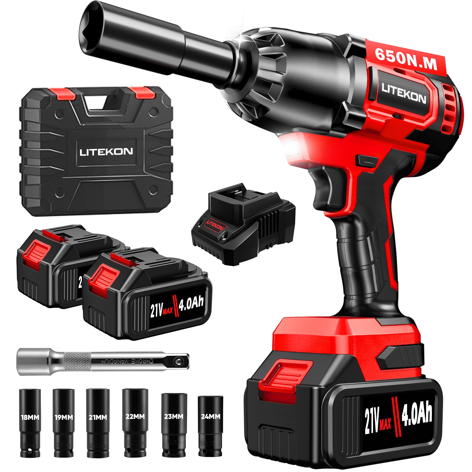 VTEK Llave de impacto sin escobillas Llave de impacto inalámbrica de 1/2 pulgada, par máximo 700N.m pistola de impacto 515 ft-lbs