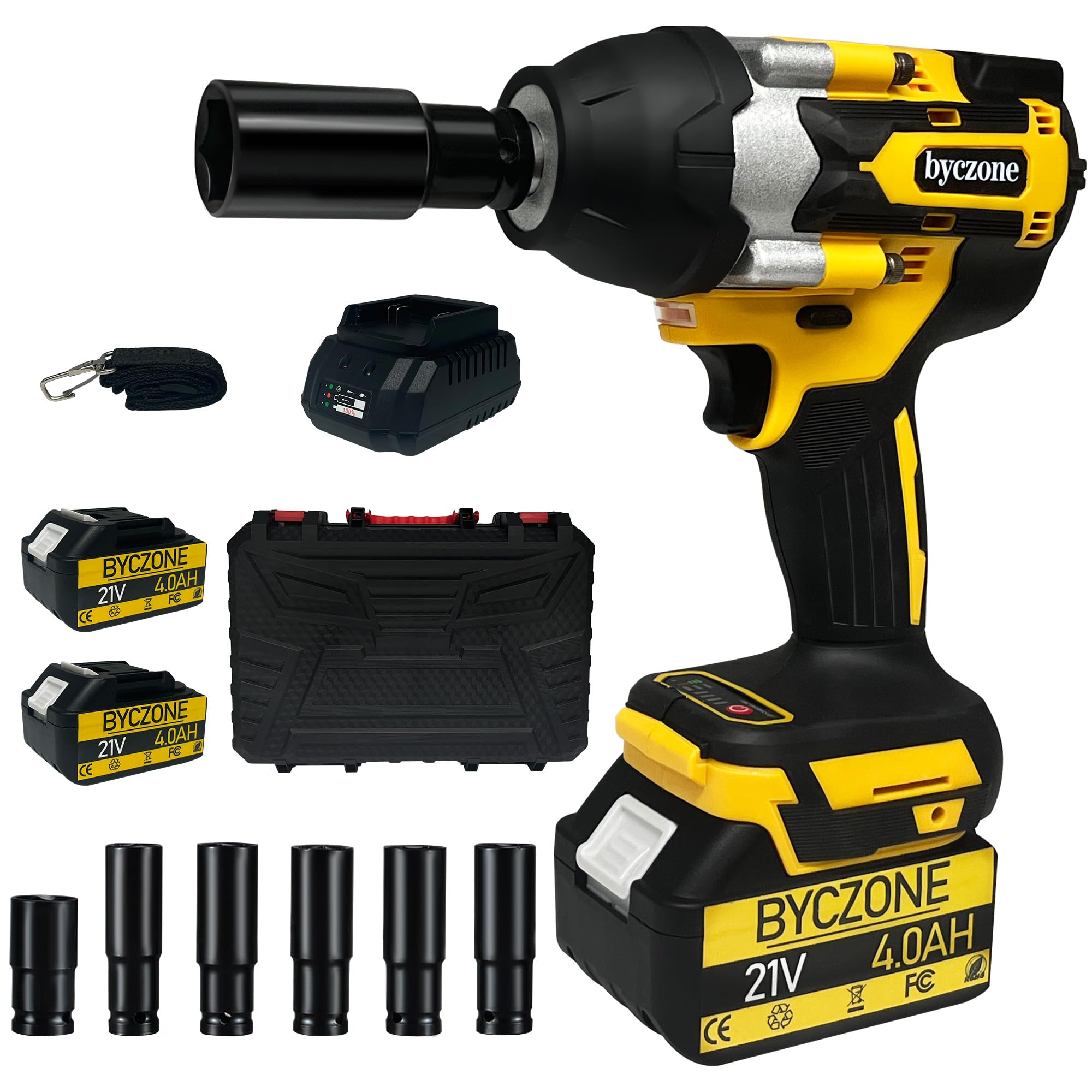 Llave de impacto inalámbrica de 1000 N.m (740 pies-libras), pistola de impacto de 1/2 pulgada de alto par sin escobillas de 21 V c