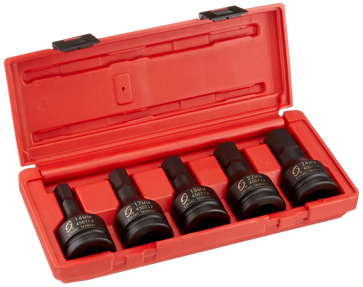 SUNEX TOOLS 4507, Juego de destornilladores hexagonales de impacto de 3/4 pulgadas, 5 piezas, métrico, 0.551 in-0.945 in, acero Cr