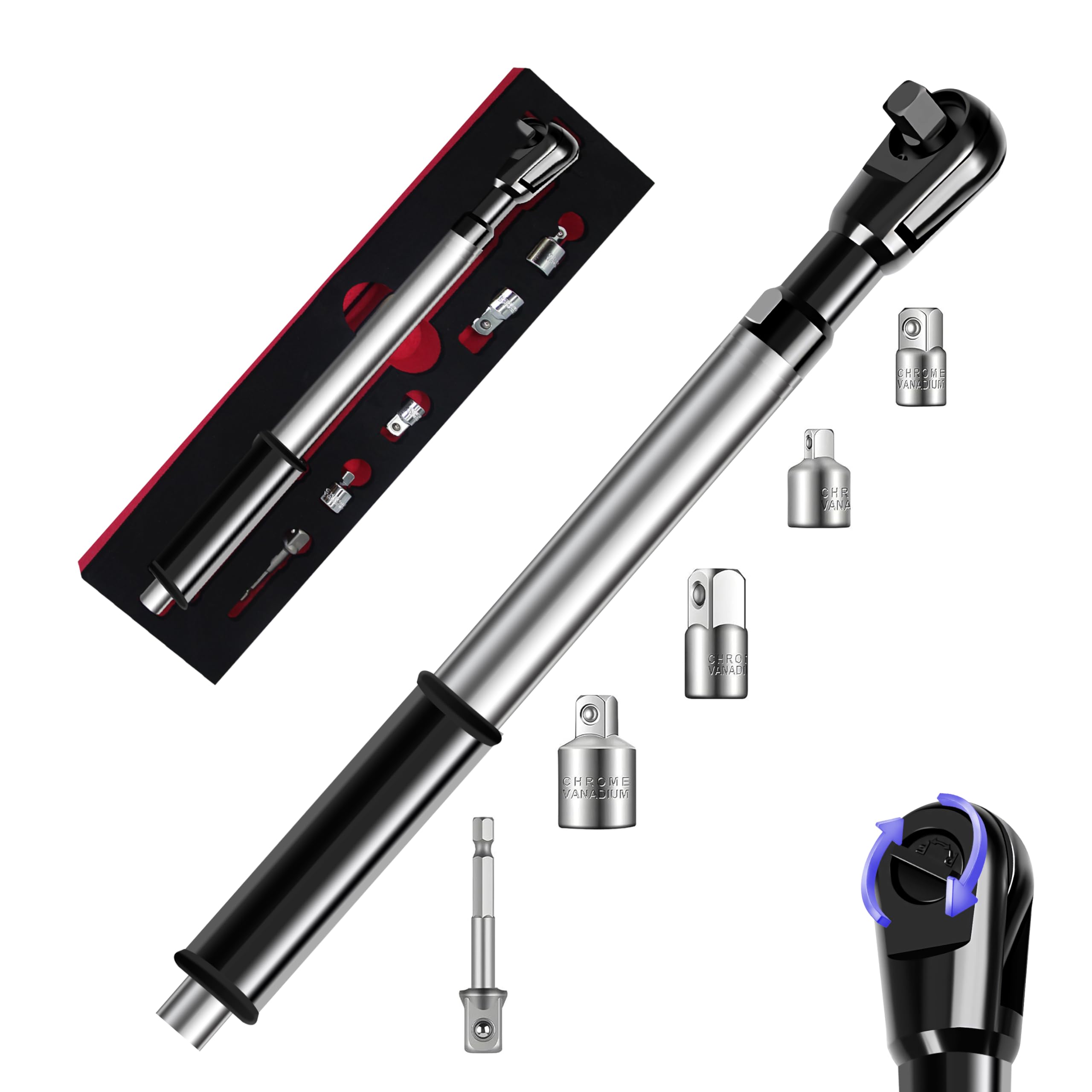 Llave de extensión desplazada, versátil de 1/4″ y 3/8″ – con 1/2 adaptadores de unidad cuadrada con bolsa de tela (Azul)