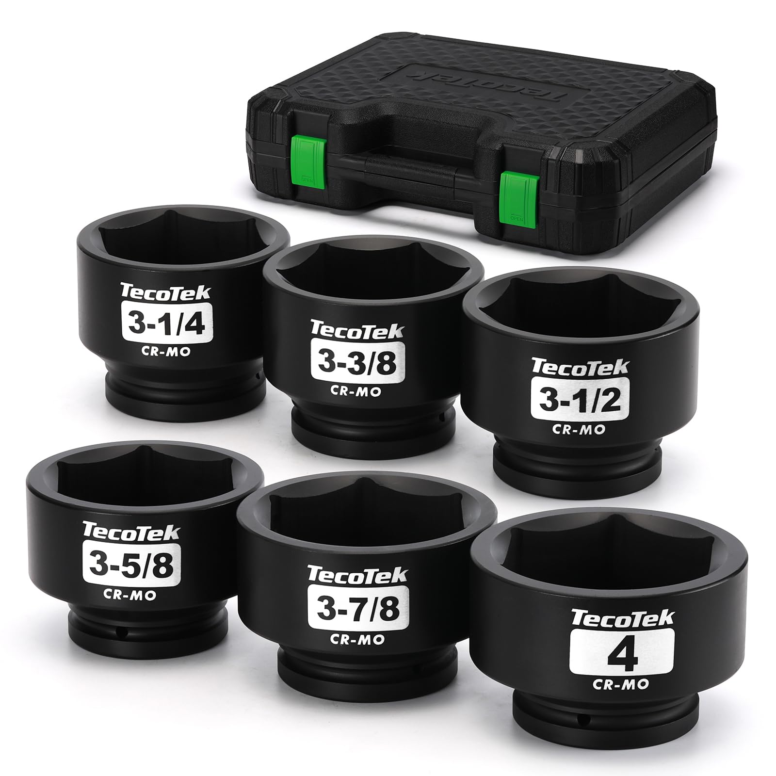Juego de llaves de vaso Jumbo de impacto poco profundo de 1 pulgada, surtido jumbo de 6 piezas, SAE, 3-1/4 pulgadas a 4 pulgadas,