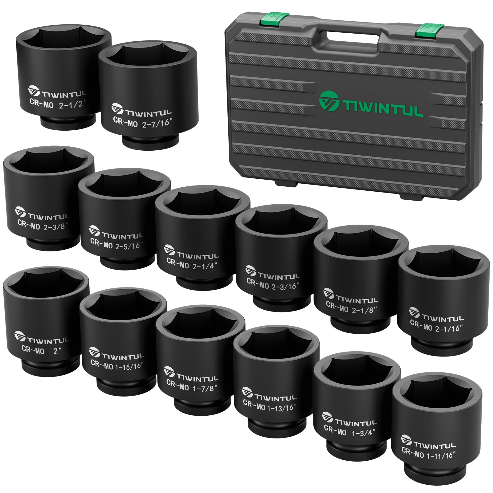 Juego de dados de impacto de 3/4 pulgadas, juego de 14 piezas de llaves de impacto jumbo, tamaños SAE (1-11/16 pulgadas a 2-1/2 pu