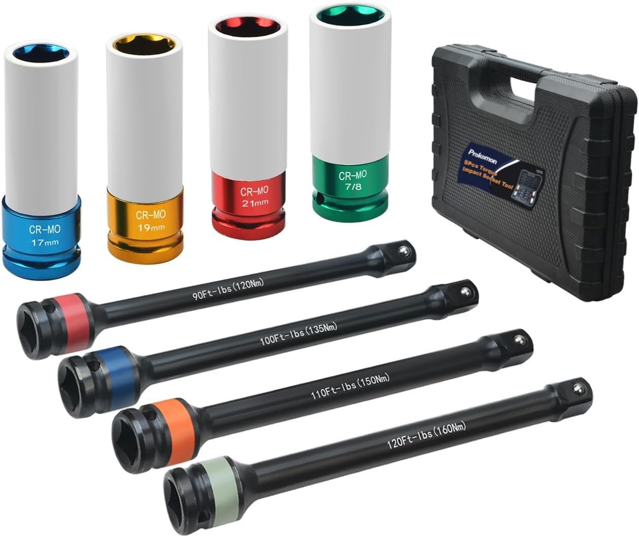 Prokomon Barra de extensión de limitación de par de transmisión de 1/2 pulgada y juego de enchufes de impacto profundo; juego de e