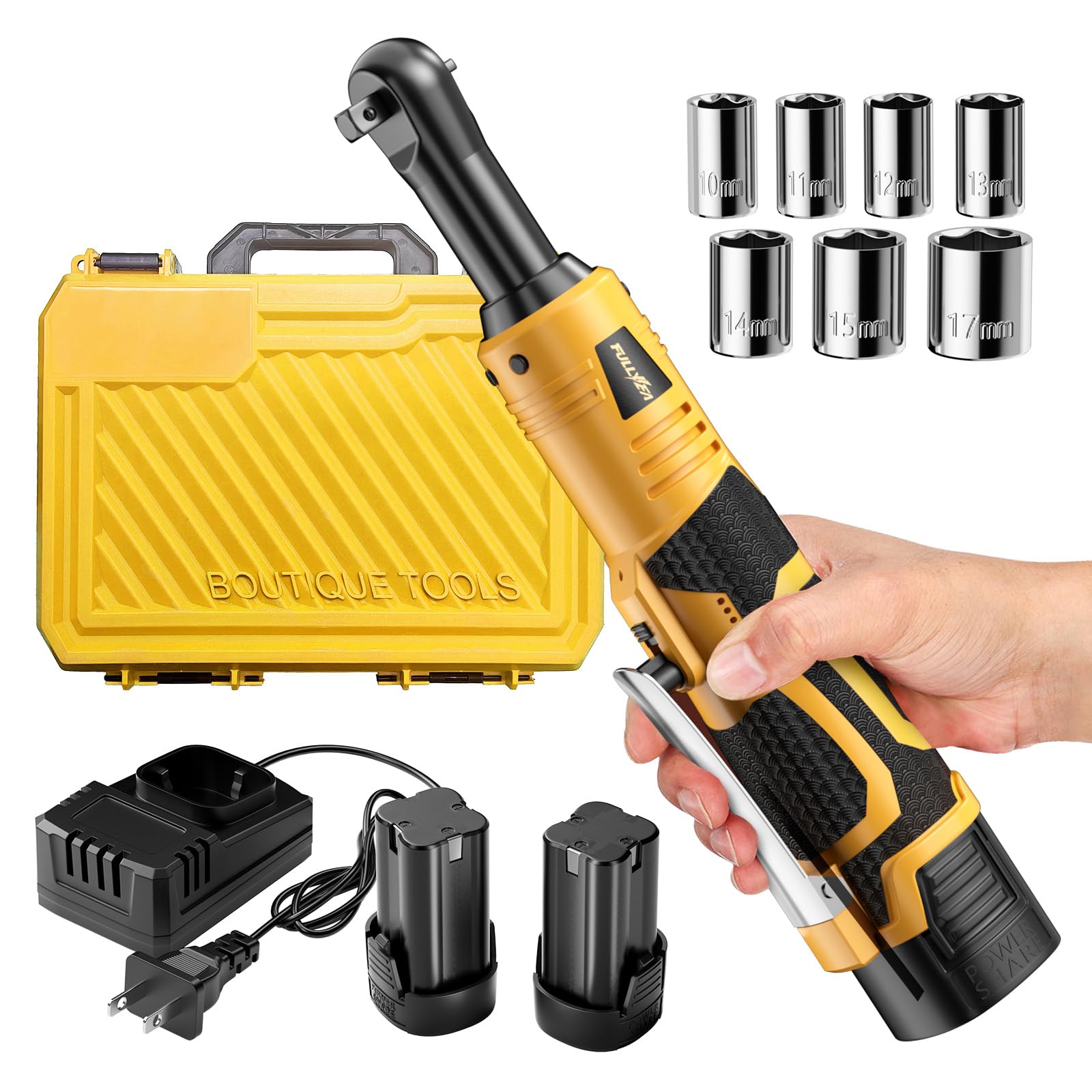 Juego de llaves de trinquete eléctricas inalámbricas, trinquete de potencia de 18 V de 3/8 pulgadas, 550 RPM, kit de herramientas
