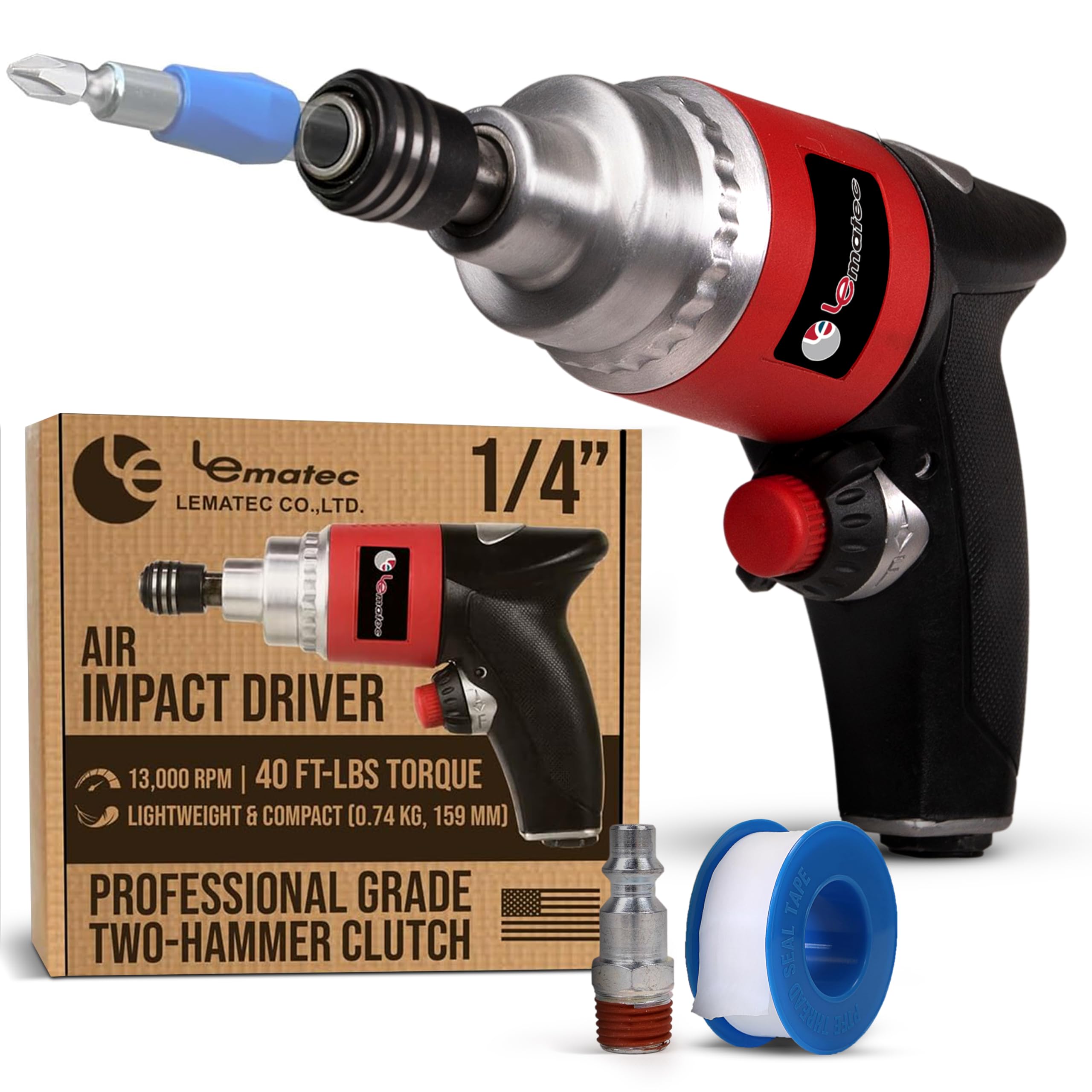 LE LEMATEC LE-ID413 – Destornillador de impacto de aire profesional – Llave neumática de 13000 RPM con martillo doble, par de 40 p