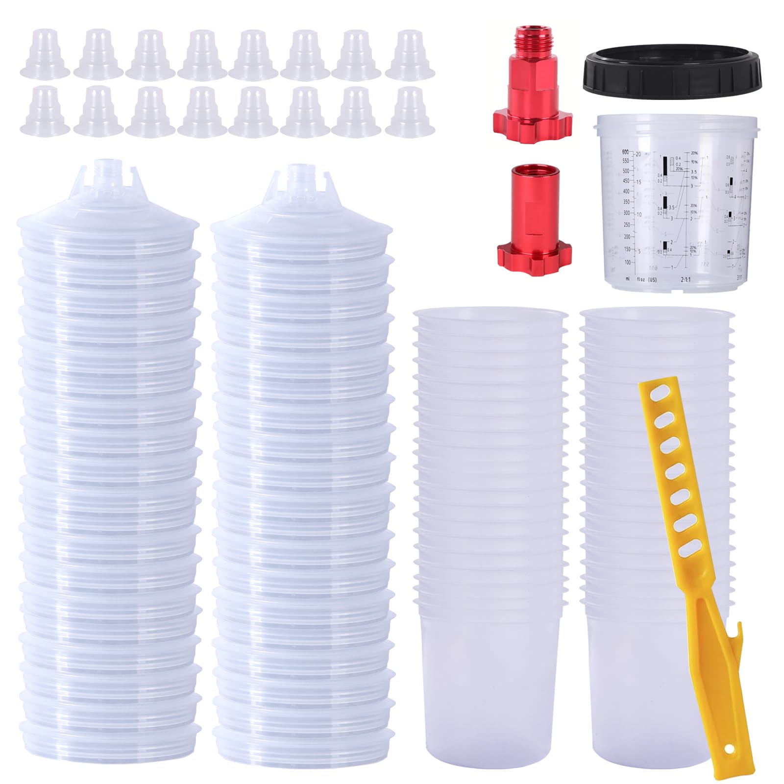 Rociador de pintura desechable para mezclar, tazas de pintura, pistolas de pintura, kit de vasos automotrices con kit de 20 onzas