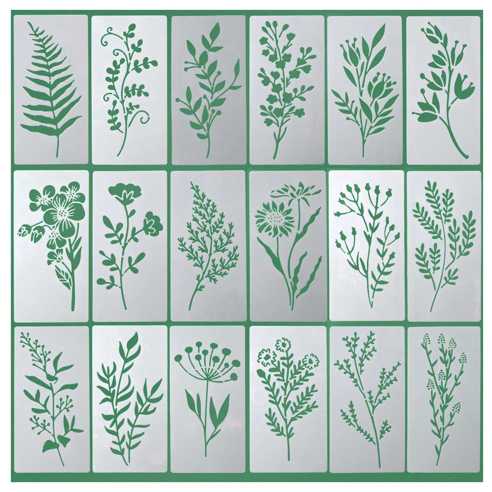 18 plantillas para pintar, plantillas de textura de plantas mixtas para pintar sobre madera, pared, tela, lienzo de tarjetas