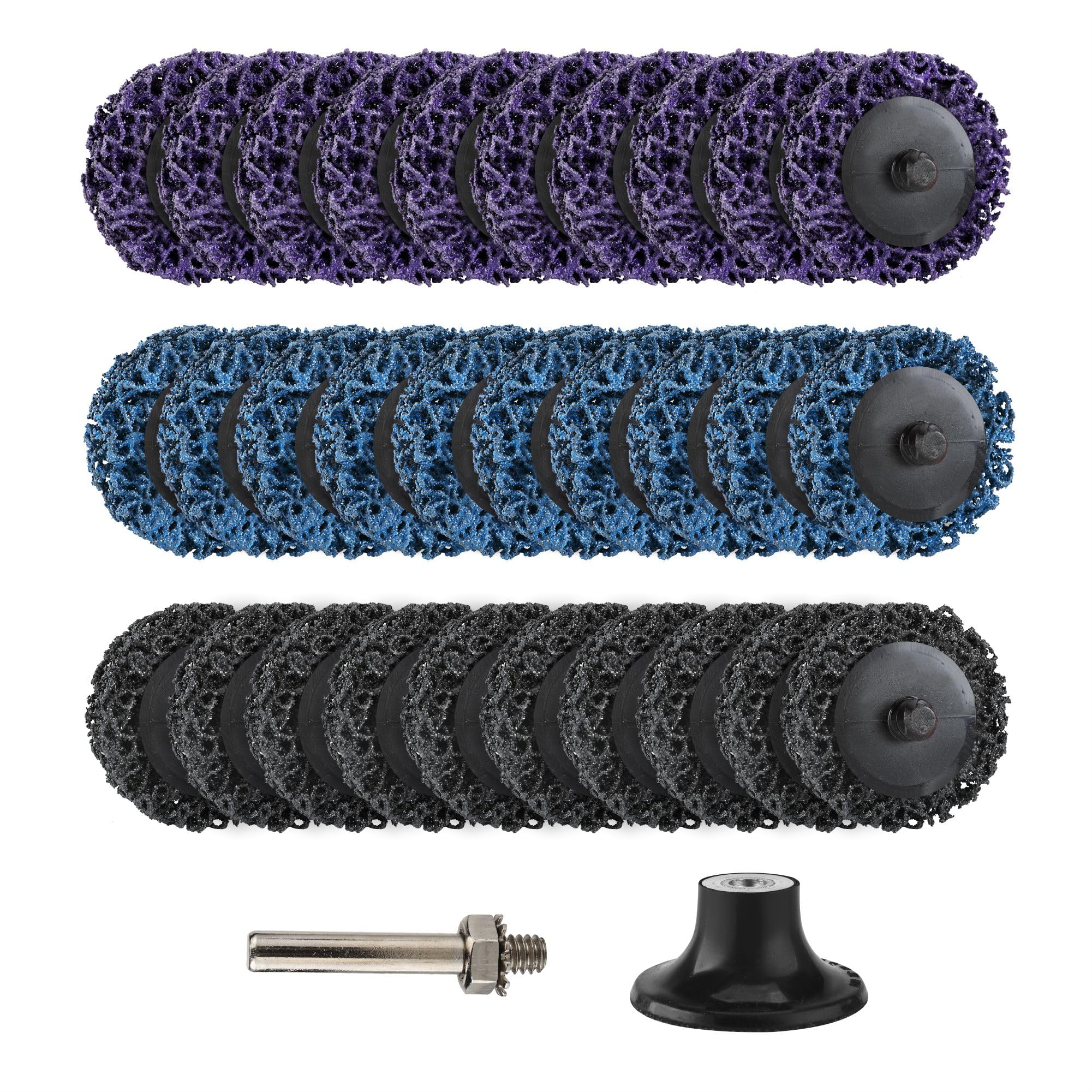 Juego de 31 ruedas de cambio rápido, discos de tira de 2 pulgadas con soporte de almohadilla de disco de 1/4 pulgadas para molinil
