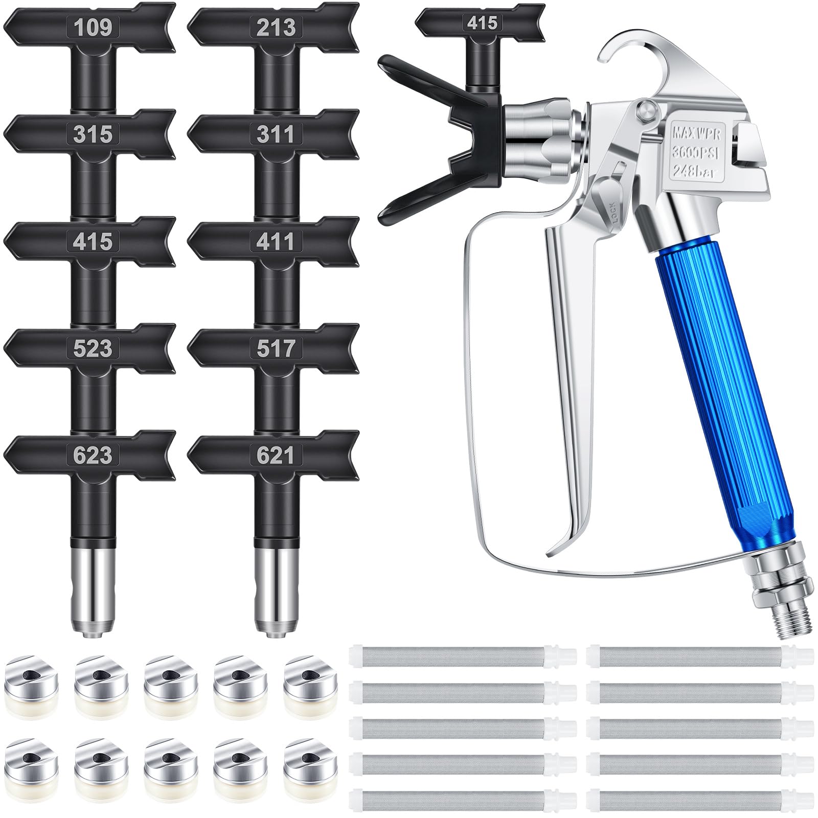 Zhengmy 17 pistolas pulverizadoras de pintura sin aire con puntas de pulverización de protector de boquilla y filtro de pistola de