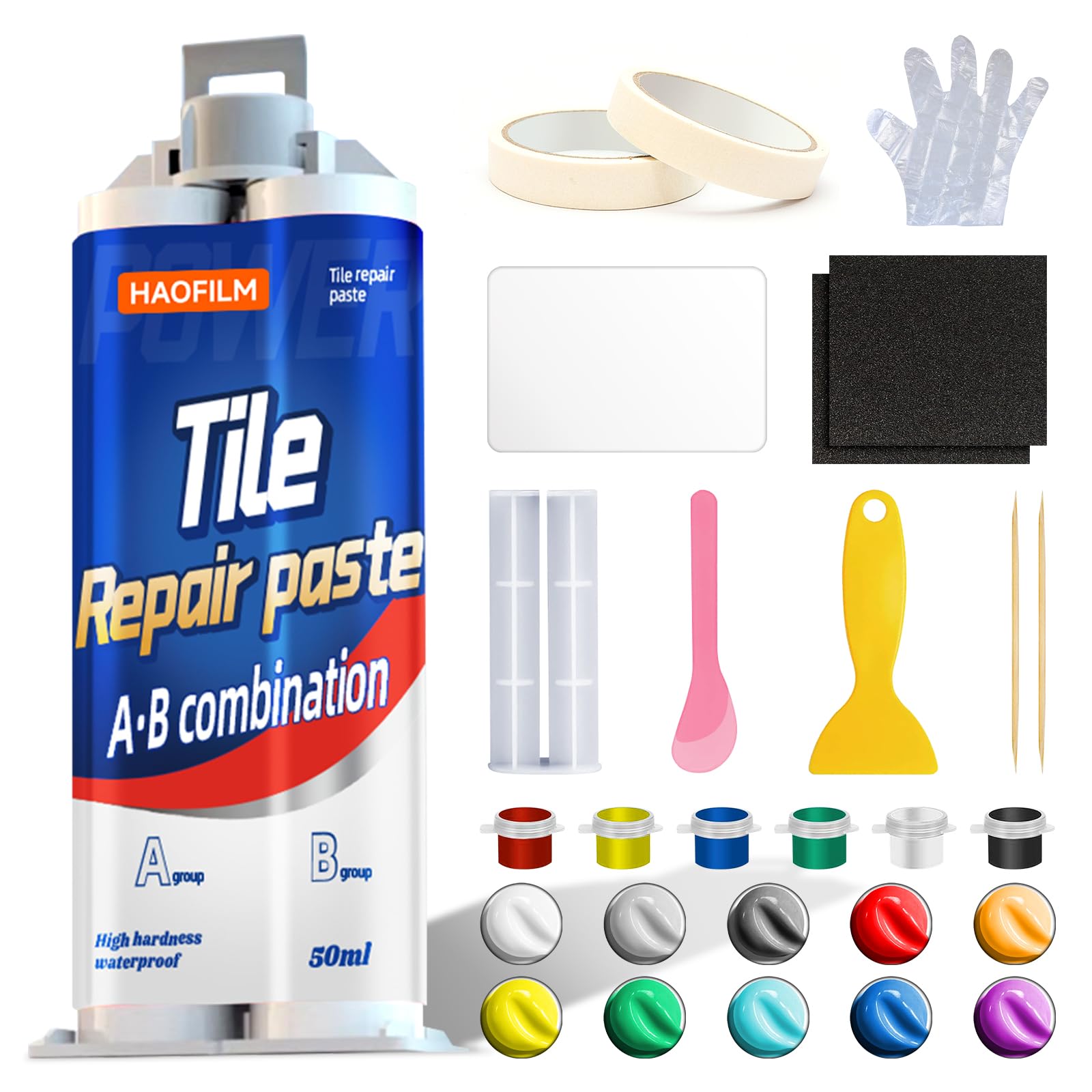 HAOFILM Kit de reparación de porcelana blanca (color coincidente), agente AB integrado de doble tubo premezclado, kit de reacabado