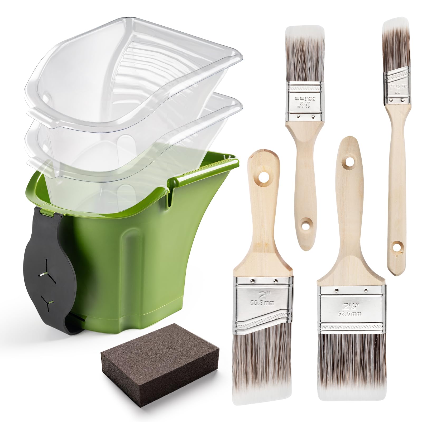 Mister Rui Pinceles de pintura, taza de pintura con revestimientos de cubo de pintura, esponja de lijado, juego de pinceles de pin