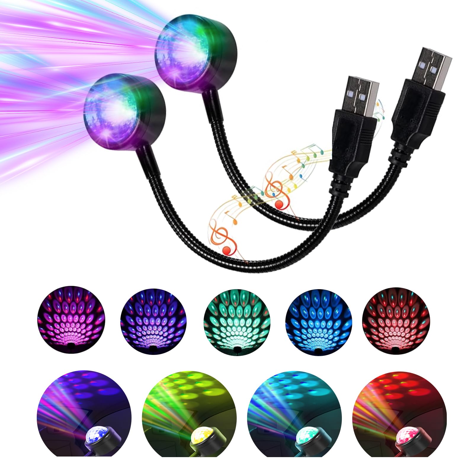 2 proyectores USB de luz nocturna, atmósfera ajustable, luces interiores de techo de automóvil, luces de estrella portátiles, luz