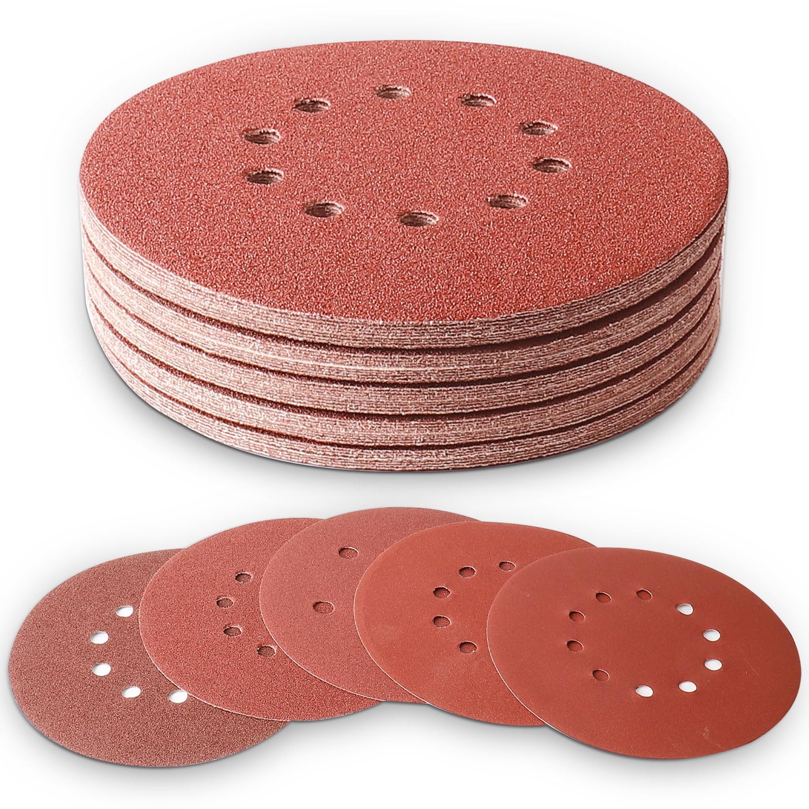 5 pulgadas 8 agujeros de gancho y bucle discos de lija de papel de lija de 5 pulgadas, 52 piezas 60 80 120 220 320 granos mixtos d