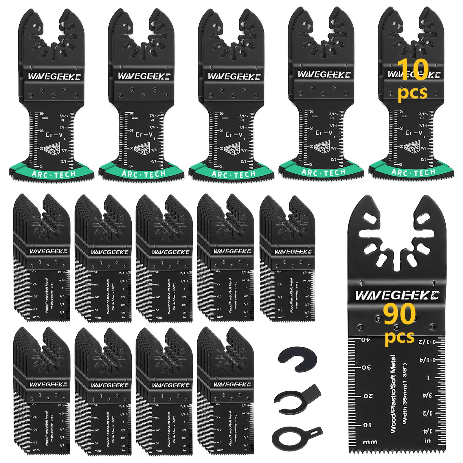 100 hojas de sierra oscilantes profesionales de titanio y HCS para madera, plástico y metal, cuchillas oscilantes de borde curvado