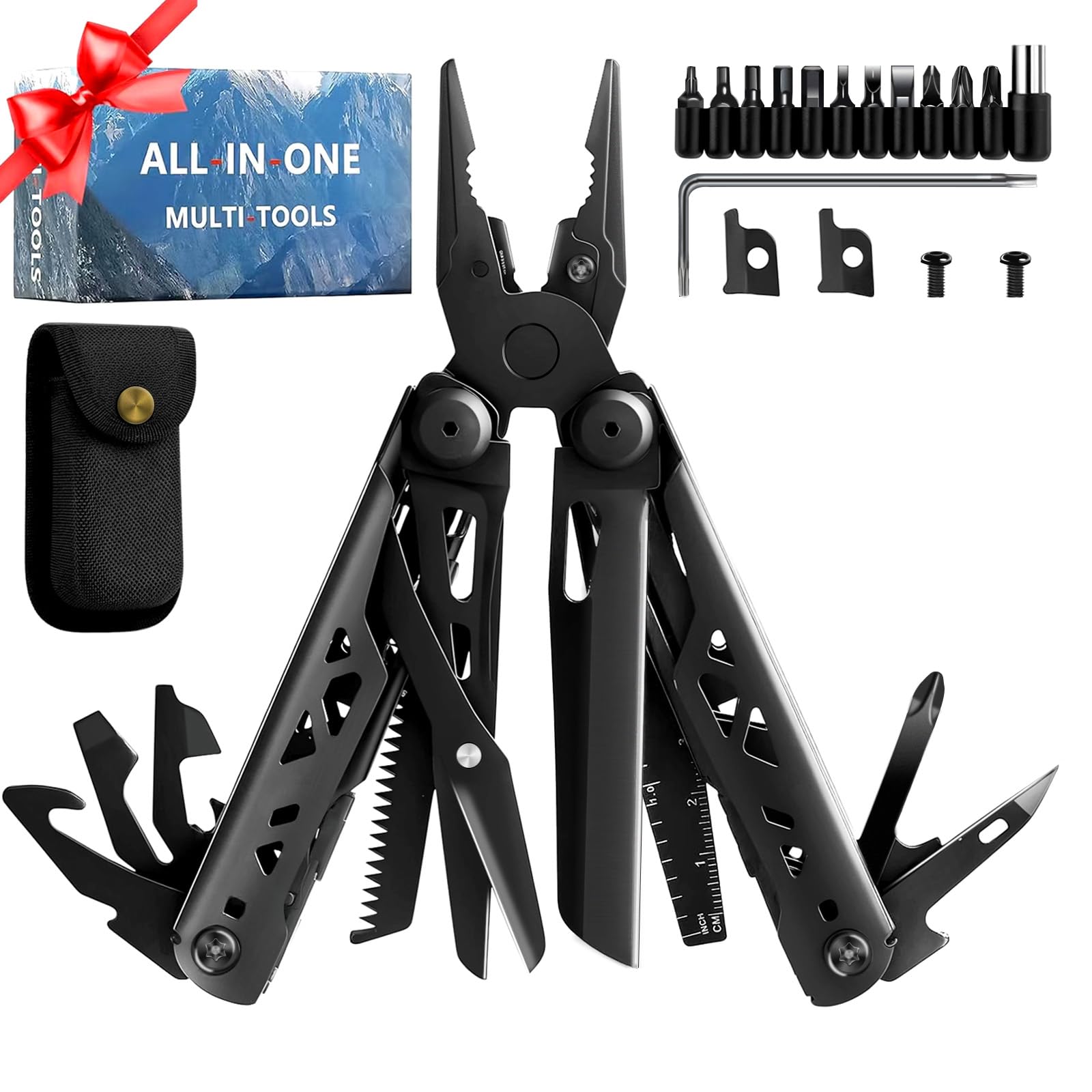 FLISSA Multiherramienta 16 en 1 con mango G10, regalo para papá, multiherramienta EDC de acero inoxidable con cuchillo de bolsillo