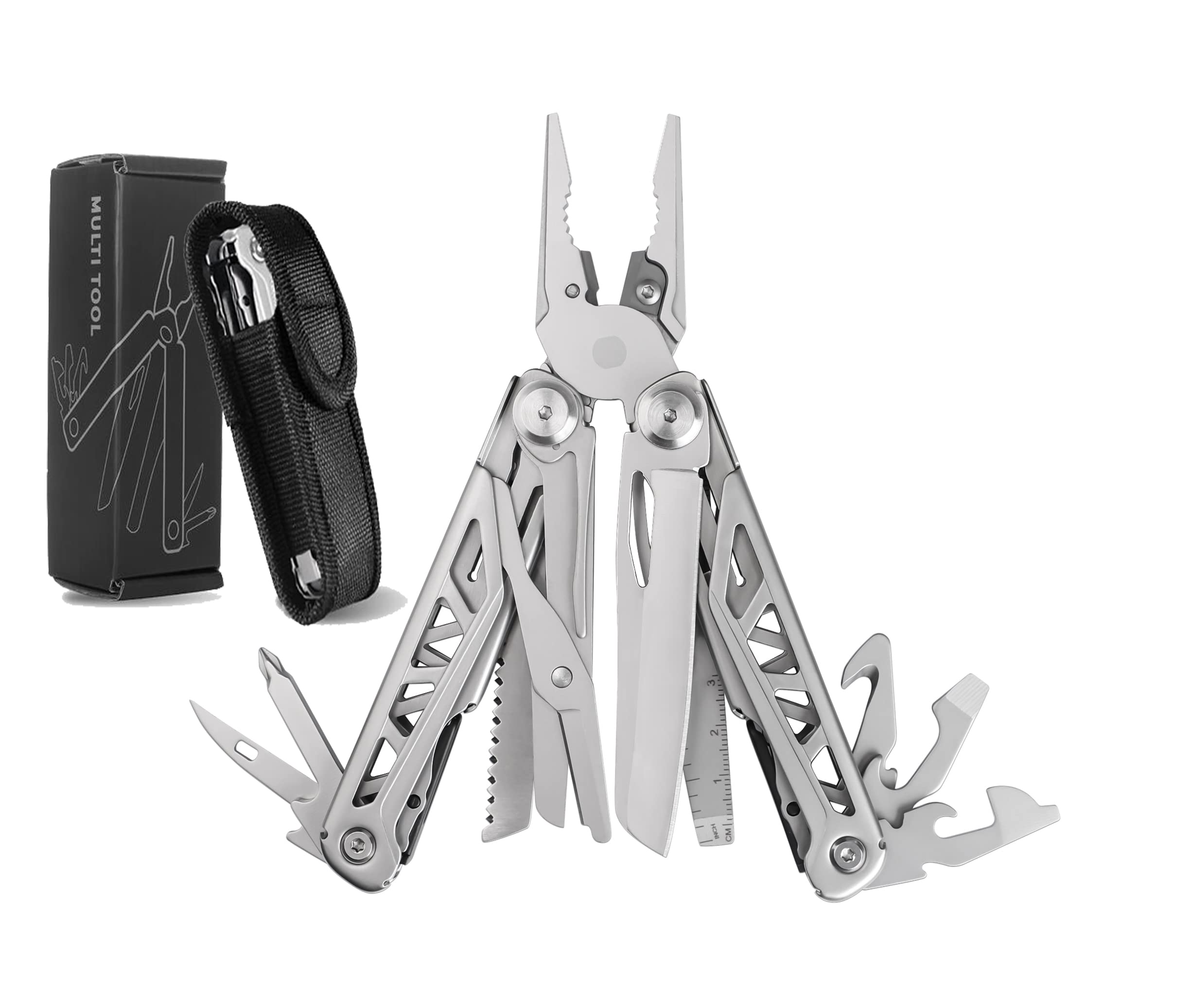 Alicates multiherramienta con funda de nailon, multiherramienta para exteriores, campamento y caza para papá, marido, hombres (pla