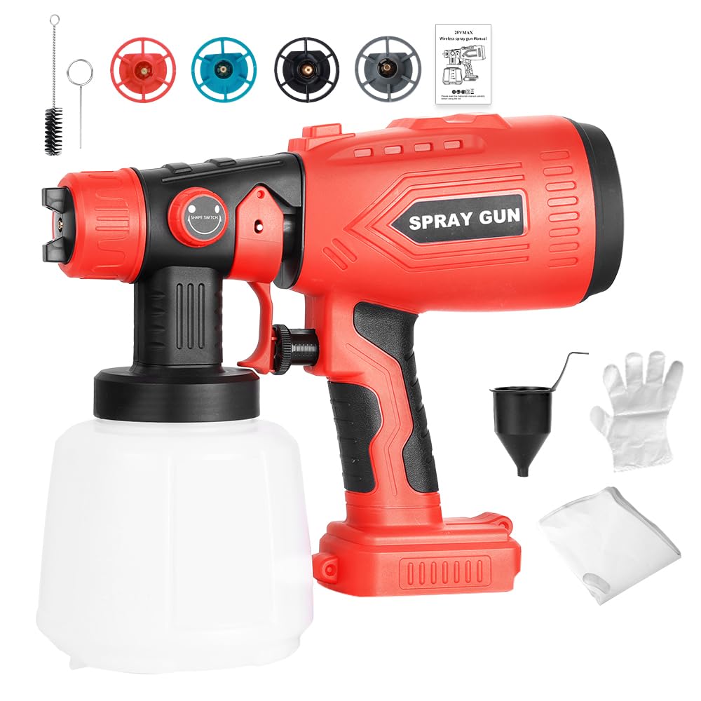 Pistola de pintura en aerosol inalámbrica, pulverizador de pintura sin aire con 2 baterías de 1500 mAh, fácil de limpiar, 5 boquil