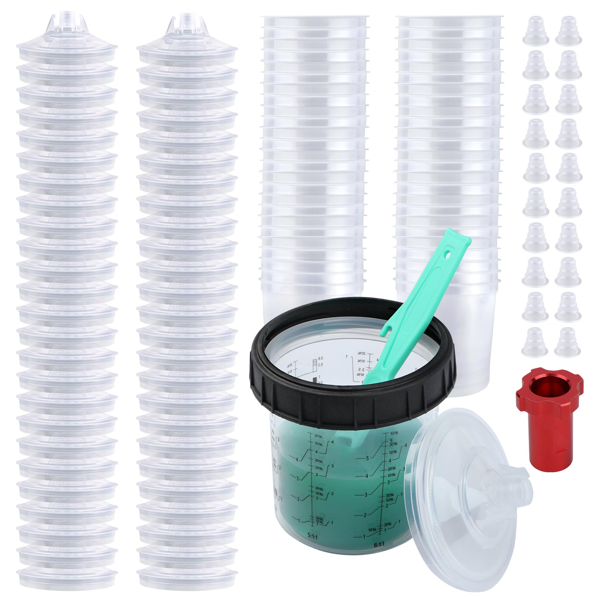 HVLP – Vaso desechable para pistola de pintura, kit de mezcla de 20 onzas (20.3 fl oz) con sistema de 50 tazas y tapas, 10 tapones