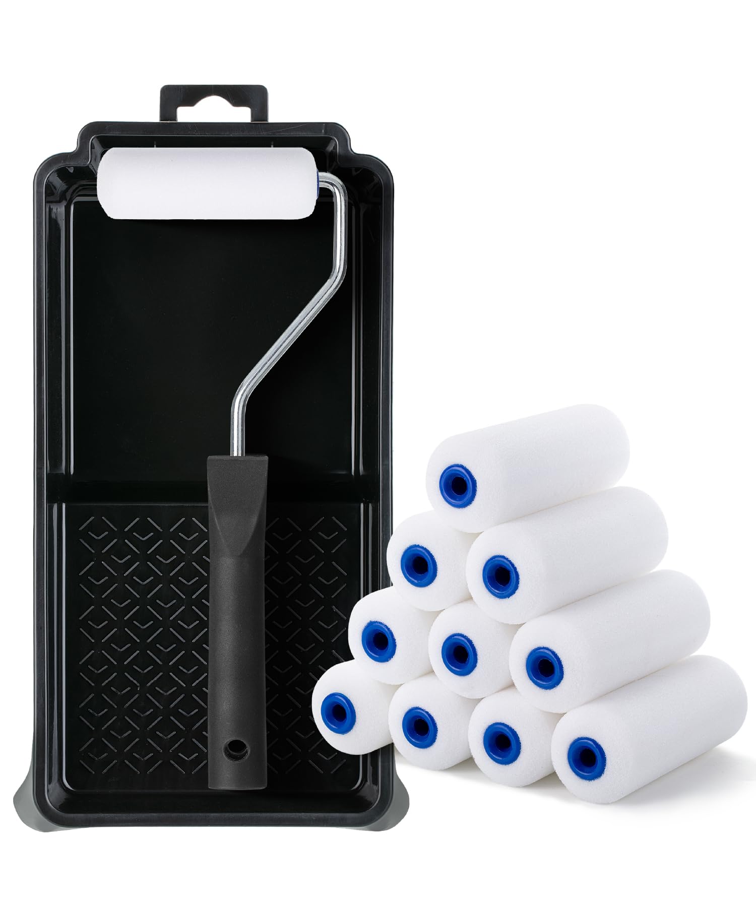 Bates – Juego de rodillos de pintura de espuma de 4 pulgadas, 12 piezas, kit de rodillos de pintura pequeños, incluye 1 bandeja de