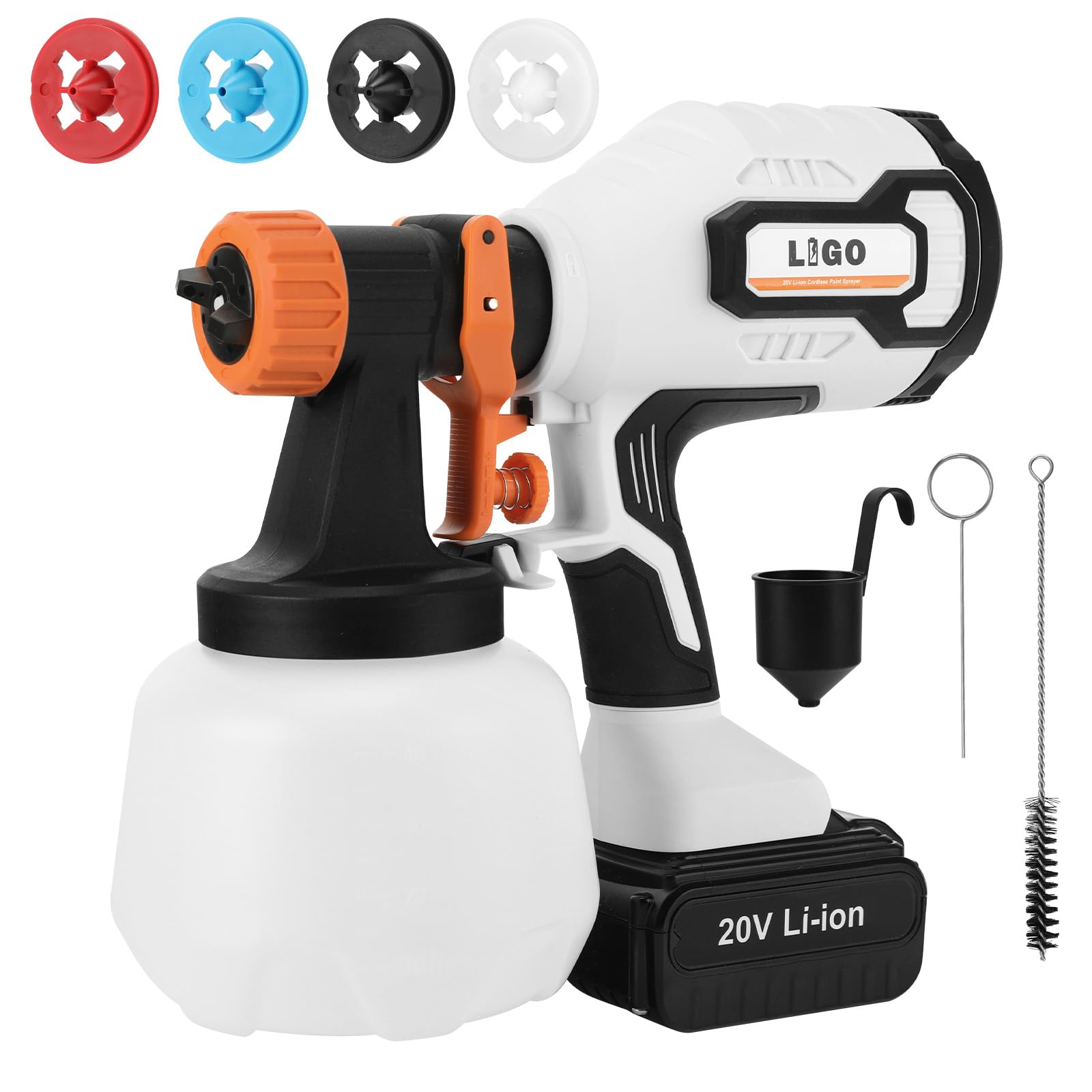 LIGO Pulverizador de pintura inalámbrico, kit de pistola de pulverización HVLP con batería de 4.0 AH, juntas de limpieza y soplado