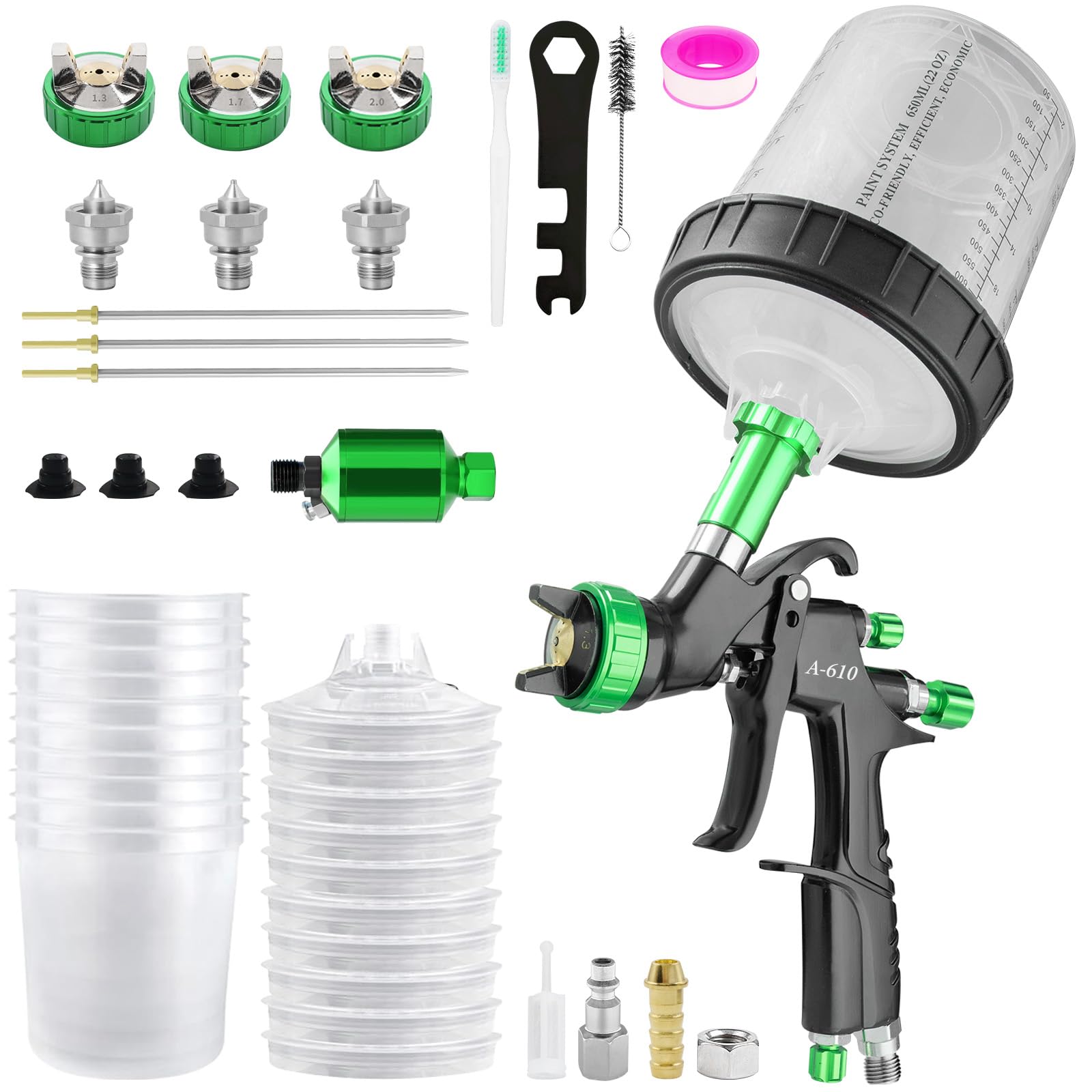 A610 LVLP – Kit de pistola de pintura automotriz con taza mezcladora de 22.0 fl oz y 10 vasos desechables, boquillas de 1.3/1.7/0.