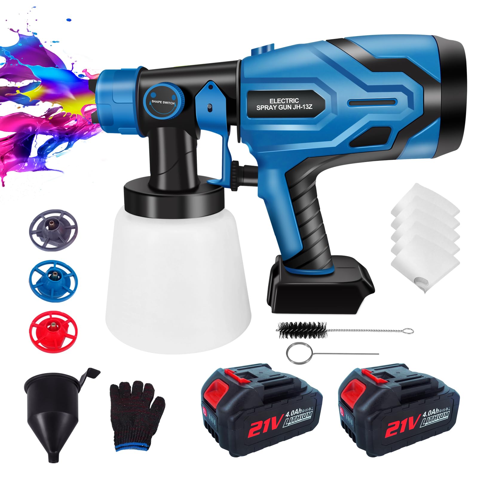Pulverizador de pintura inalámbrico con 2 baterías, pistola de pintura eléctrica HVLP con recipiente de 33.8 fl oz, 5 boquillas de
